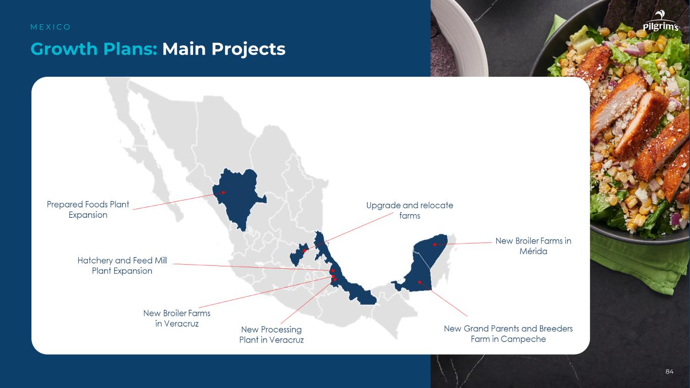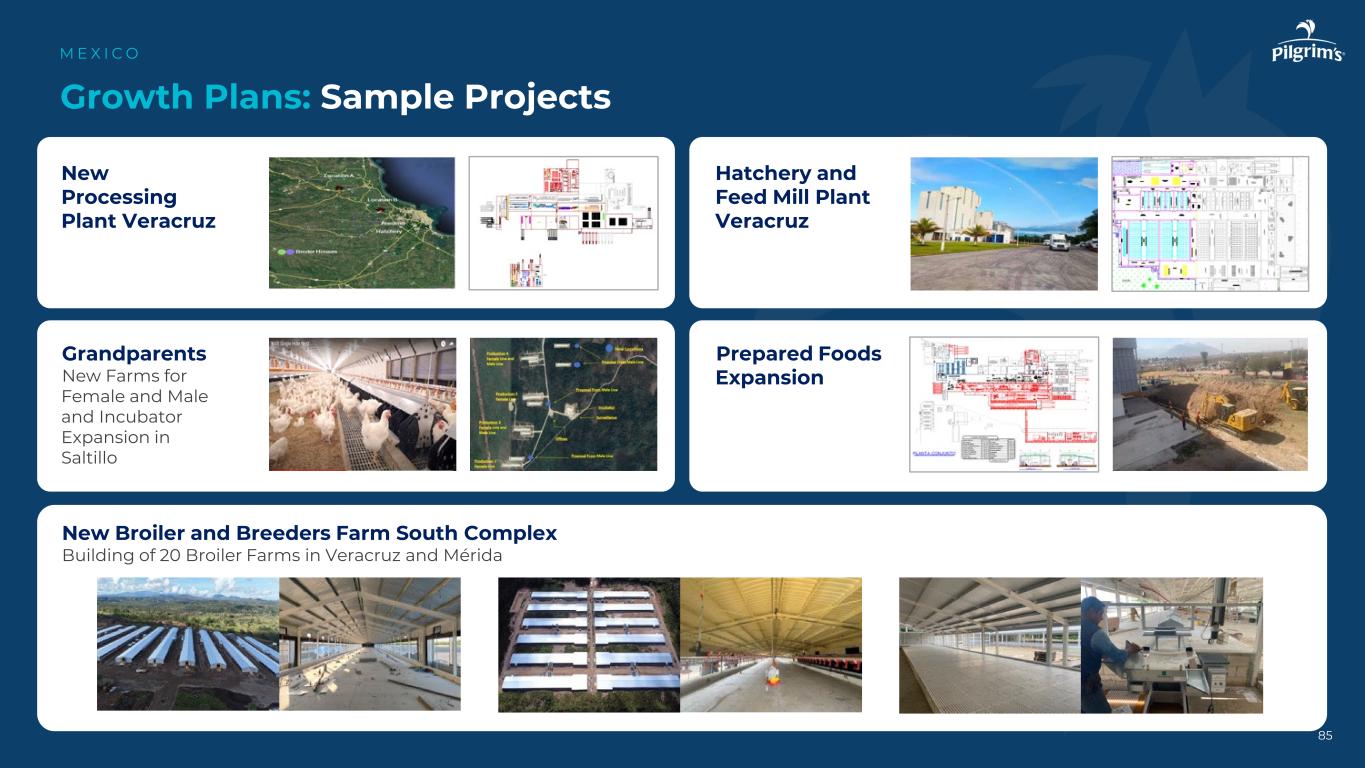 和新的加工厂Veracruz孵化场和饲料厂厂Veracruz新的肉鸡和种鸡场South Complex Building of 20个肉鸡农场在Veracruz和M é rida Grandparents新的母鸡和雄性农场和孵化器扩建在Saltillo预制食品扩张增长计划:样本项目M E X I C O 85