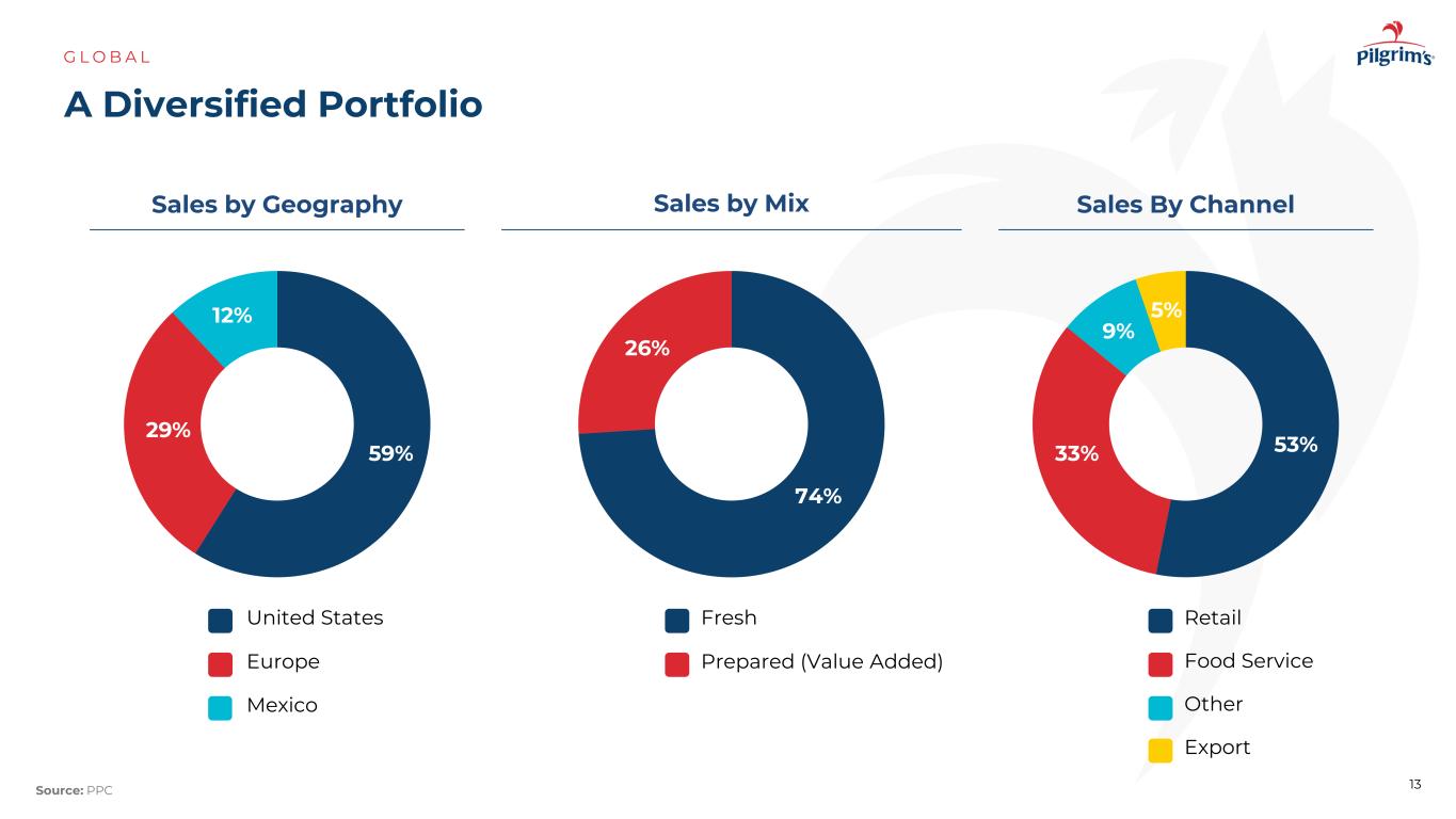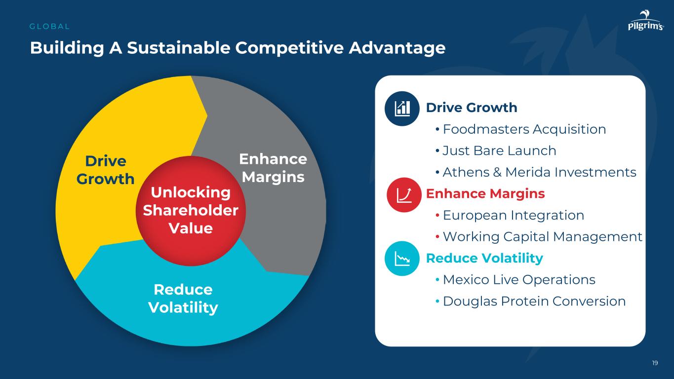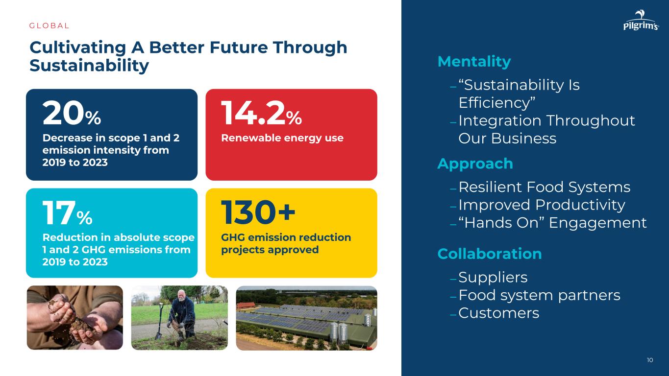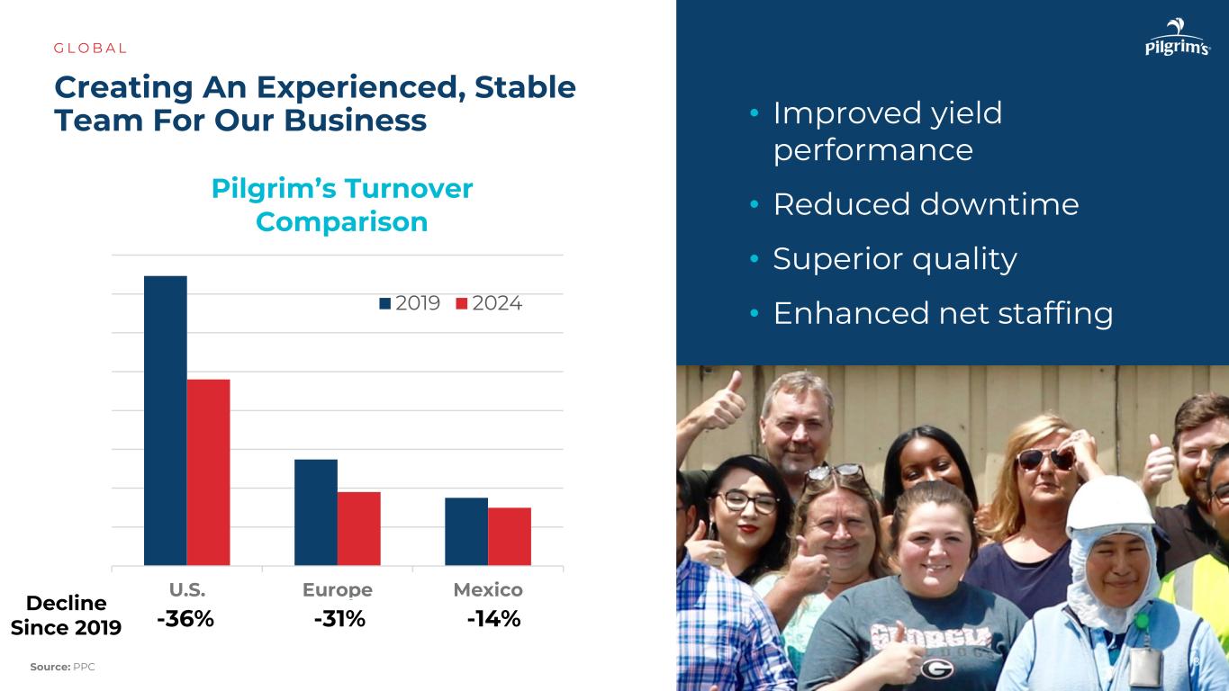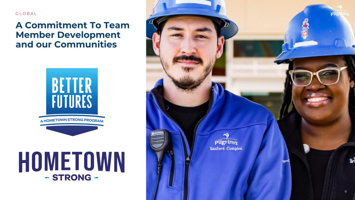 •良率表现改善•停机时间减少•质量优越•净人员配置增强,为我们的业务创建一个经验丰富、稳定的团队G L O B A L 8美欧墨西哥Pilgrim的营业额比较20192024年资料来源:PPC-36 %-31 %-14 %自2019年以来下降