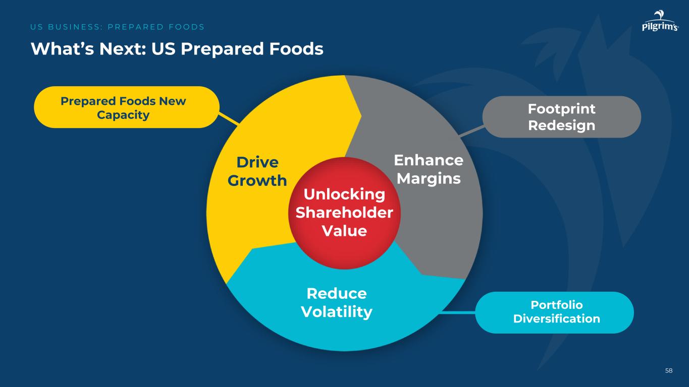 关键要点:美国预制食品美国B美国N E S:P R E P A R E D F O O D S推动增长•预制食品在零售和外地的重要增长机会•不同品牌和渠道的业绩良好记录提高了利润率•针对不同的消费者细分市场和运营商需求量身定制的品牌组合方法•能力对零售和离家渠道都具有可扩展性的产品降低了波动性•利用供应链能力确保服务需求的可用性•培养品牌产品组合以减轻商品波动的影响57