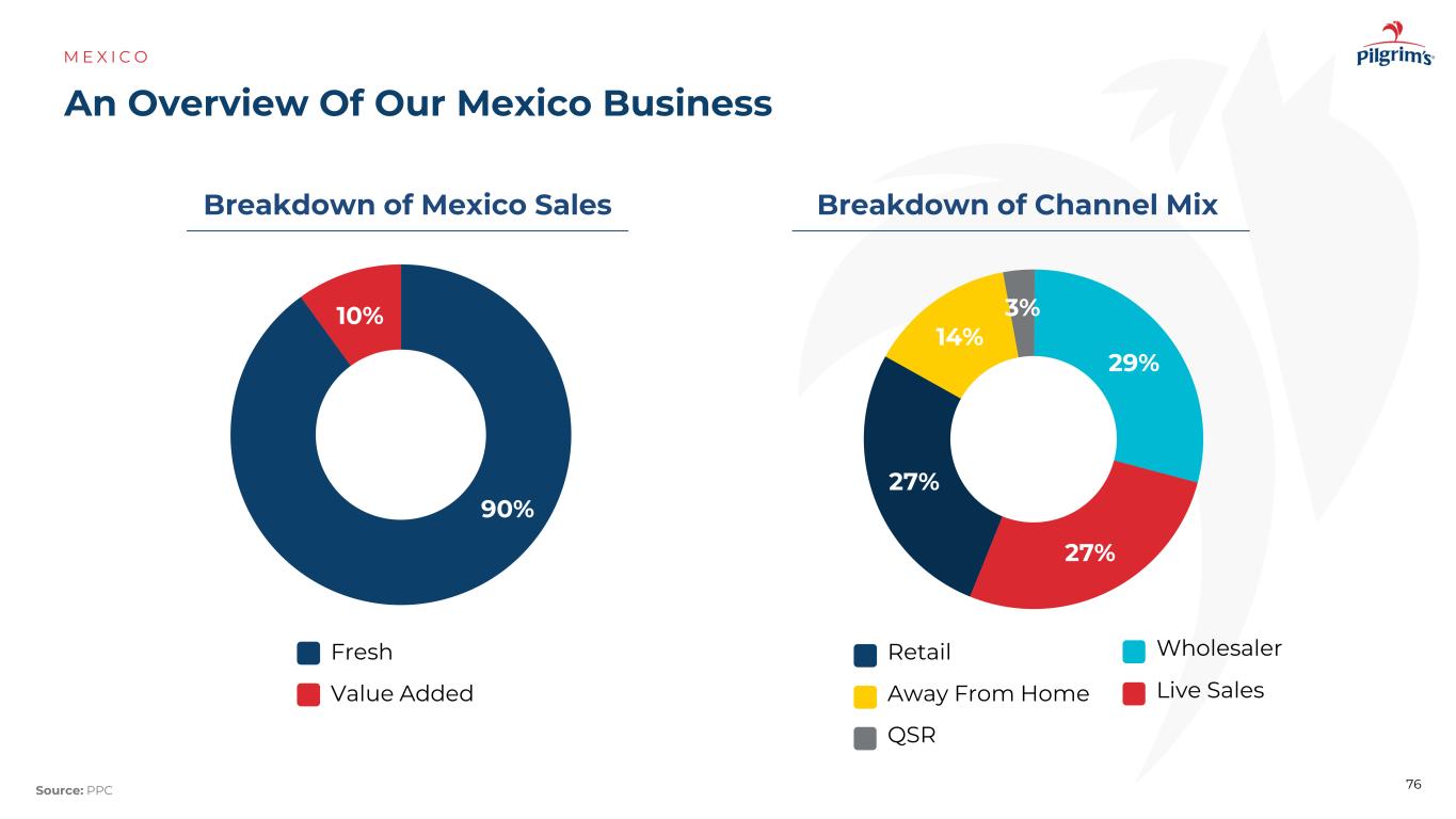 我司墨西哥业务概览M E X I C O 27% 14% 3% 29% 27%细分墨西哥销售90% 10%细分渠道组合增值新鲜QSR远离家居零售批发商直播销售76来源:PPC