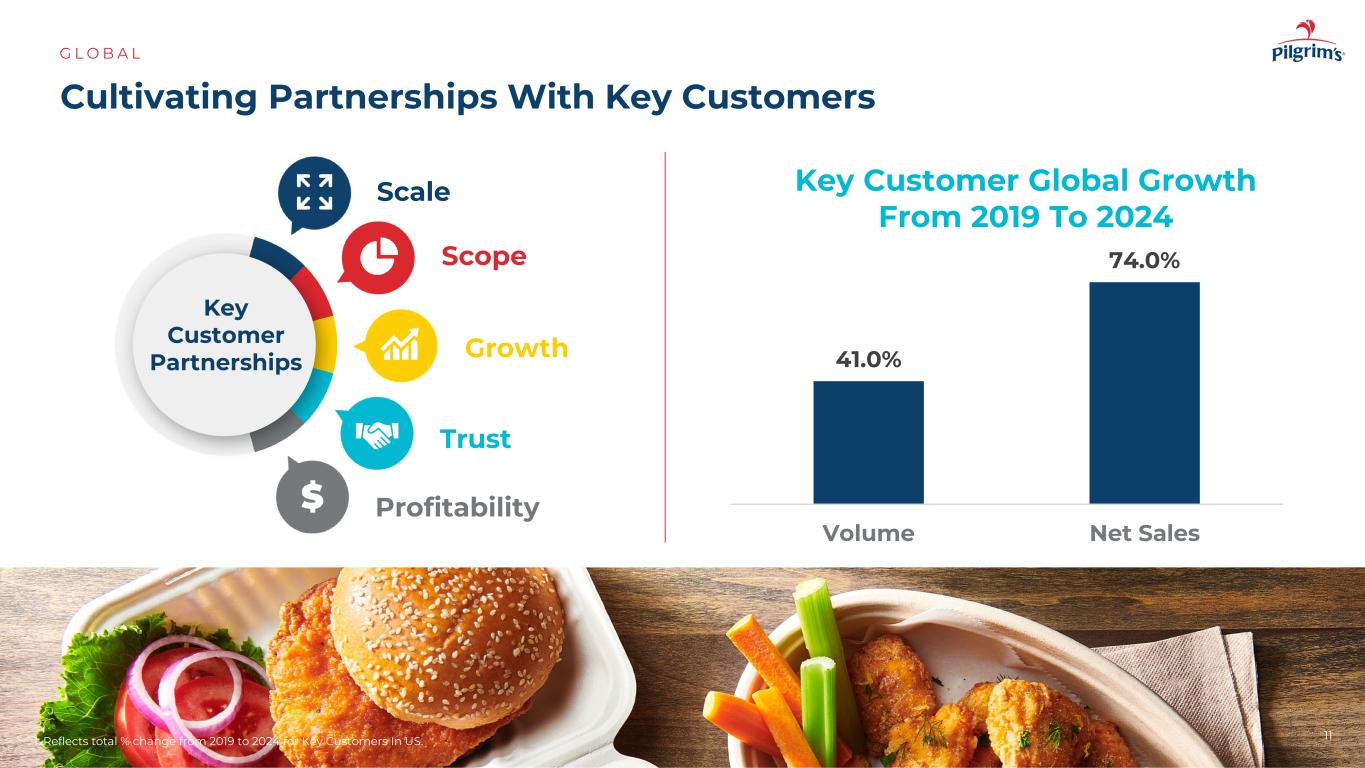 培养与关键客户的合作伙伴关系G L O B A L 1。反映了美国关键客户从2019年到2024年的总%变化。41.0% 74.0%量净销售额11关键客户伙伴关系规模增长范围信托盈利能力关键客户全球增长情况2019-2024年