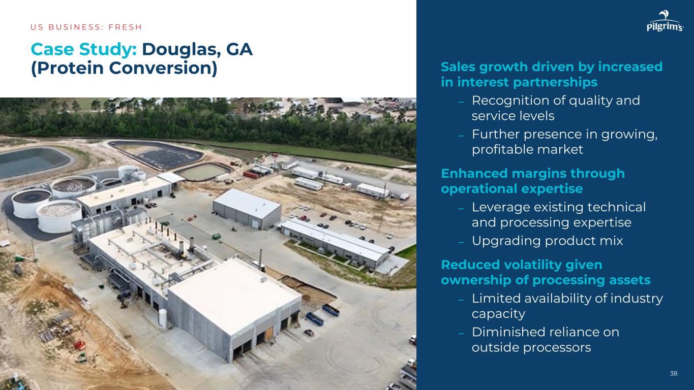 利益合作关系增加推动销售增长–对质量和服务水平的认可–在不断增长、有利可图的市场中进一步存在通过运营专业知识提高利润率–利用现有技术和加工专业知识–升级产品组合减少了波动性,因为加工资产的所有权–行业产能有限可用–减少了对外部加工商的依赖案例研究:Douglas,GA(蛋白质转化)US B US I N E S S:F R E S H 38