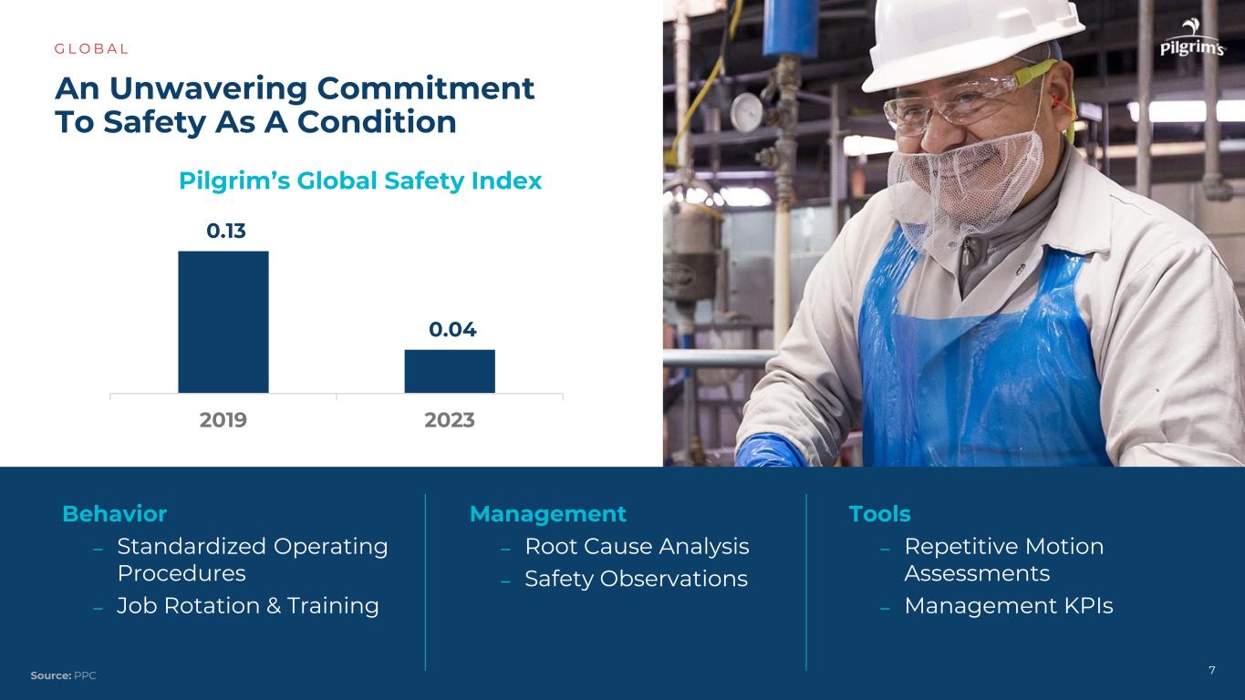 坚定不移地致力于将安全作为一种条件G L O B A L 70.13 0.04 20192023行为–标准化操作程序–岗位轮换&培训管理–根本原因分析–安全观察工具–重复动作评估–管理KPI Pilgrim的全球安全指数来源:PPC