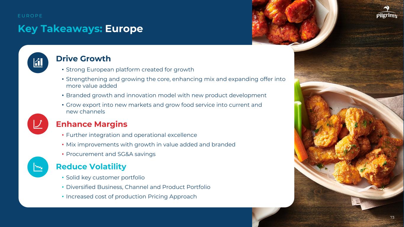 Win in our Heartland扩展至新品类扩大渠道存在扩展至新市场Build & Buy新品牌进一步扩展零售和食品服务进入大学进入体育场和电影院Oakhouse分配器品牌增长战略E U R O E 72