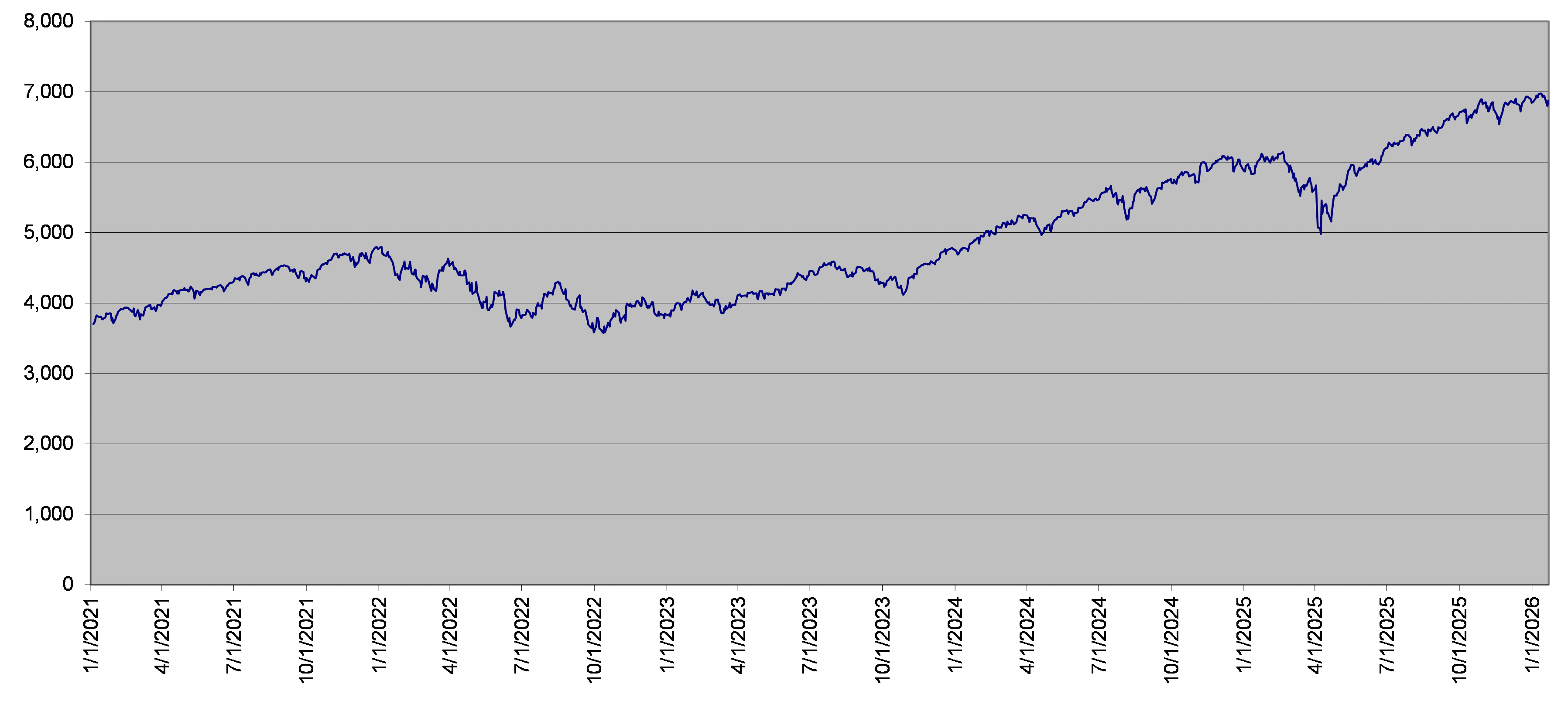 | SPX指数每日收盘水平 2021年1月1日至2026年1月21日 |
