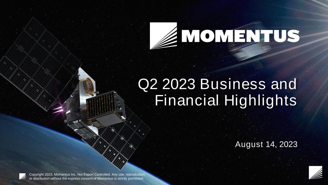 版权所有2023。Momentus Inc.不受出口管制。未经Momentus明确同意,严禁使用、复制或分发。本文件为公共领域版权所有023。Momentus Inc.不受出口管制。未经Momentu明确同意,严禁使用、复制或分发。2023年第二季度业务和财务摘要2023年8月14日