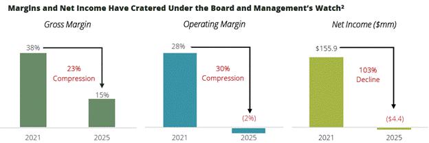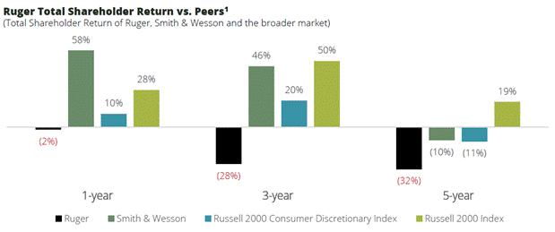 我们投资Ruger是因为我们相信其传奇的美国品牌的实力、有意义的资产和深厚的忠诚客户群。不幸的是,鲁格一直落后于枪械行业,长期股东回报为负,并经历了持续的收益和利润率压缩。值得注意的是,净收入从峰值下降了90%以上,目前处于十年来的最低水平,反映出未能将机会转化为持久的价值创造。过去十年,鲁格的股票表现也严重落后于同行和相关基准。鲁格的董事会似乎将自己的利益和自我保护置于对公司所有者即股东的问责之上。董事会负有将股东利益视为至高无上的受托责任,但目前董事会的行为往往使现任企业绝缘。我们认为,董事会所谓的刷新战略在确保鲁格董事会真正问责方面做得还远远不够。经过仔细考虑,我们现在认为,股东唯一剩下的前进道路是在即将举行的年度会议上寻求有意义的董事会变动,以恢复适当的一致性,加强监督并确保Ruger的运营以单一的重点为股东、员工和客户实现长期价值最大化。