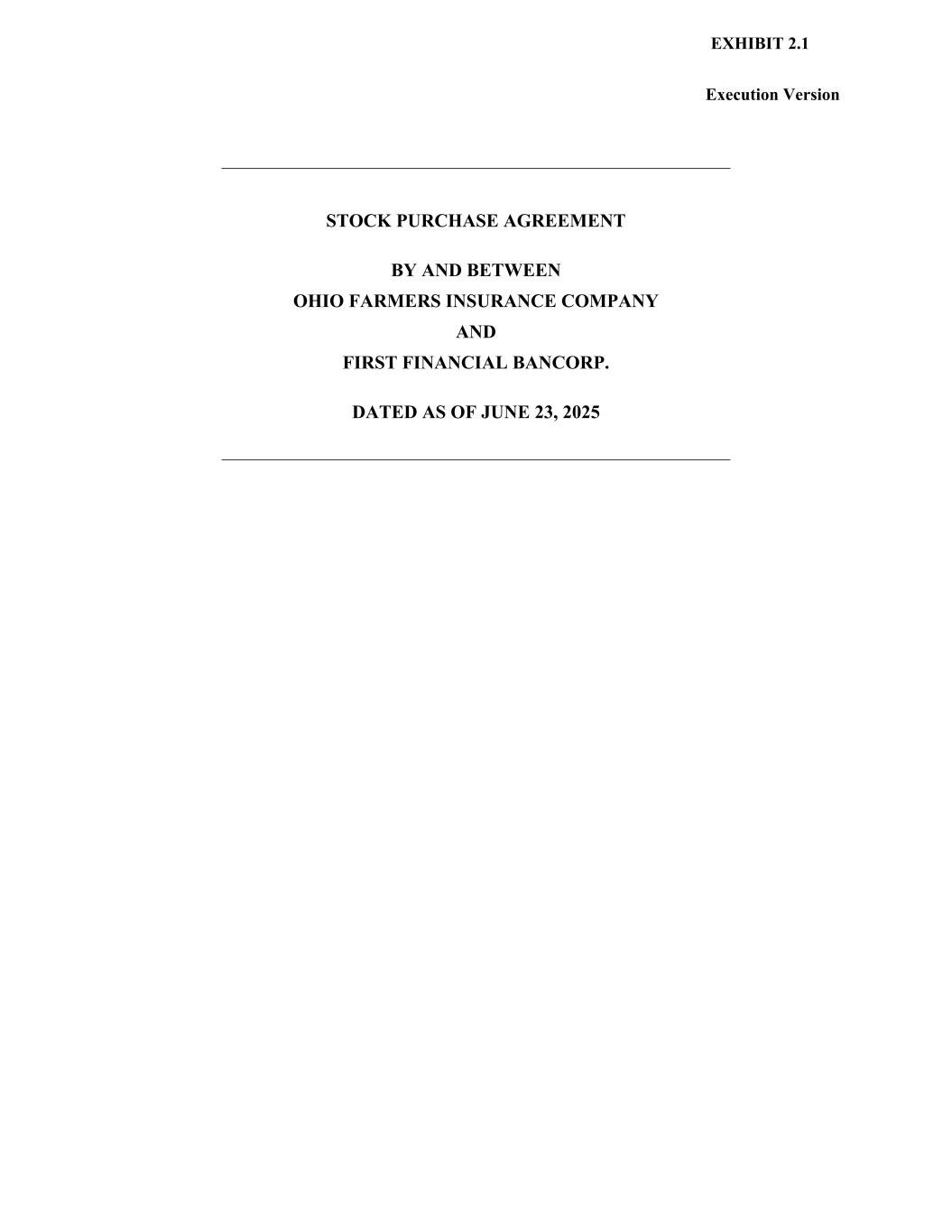 执行版本俄亥俄州农民保险公司与第一金融银行之间的股票购买协议。截至2025年6月23日展览2.1