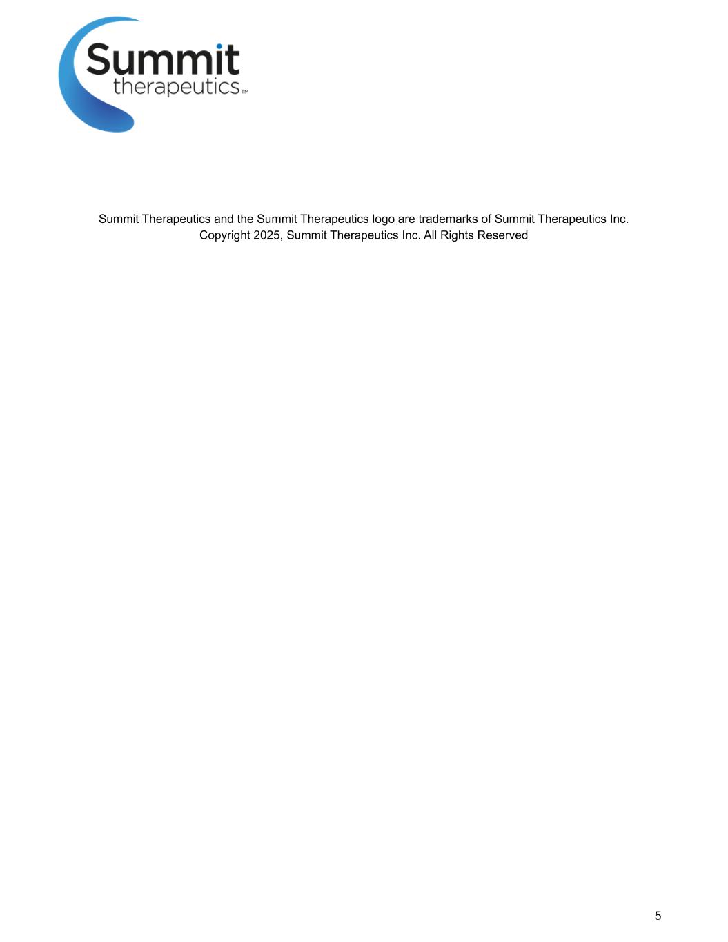 5 Summit Therapeutics及Summit Therapeutics标识为Summit Therapeutics Inc. 2025版权所有的商标,Summit Therapeutics Inc.保留所有权利