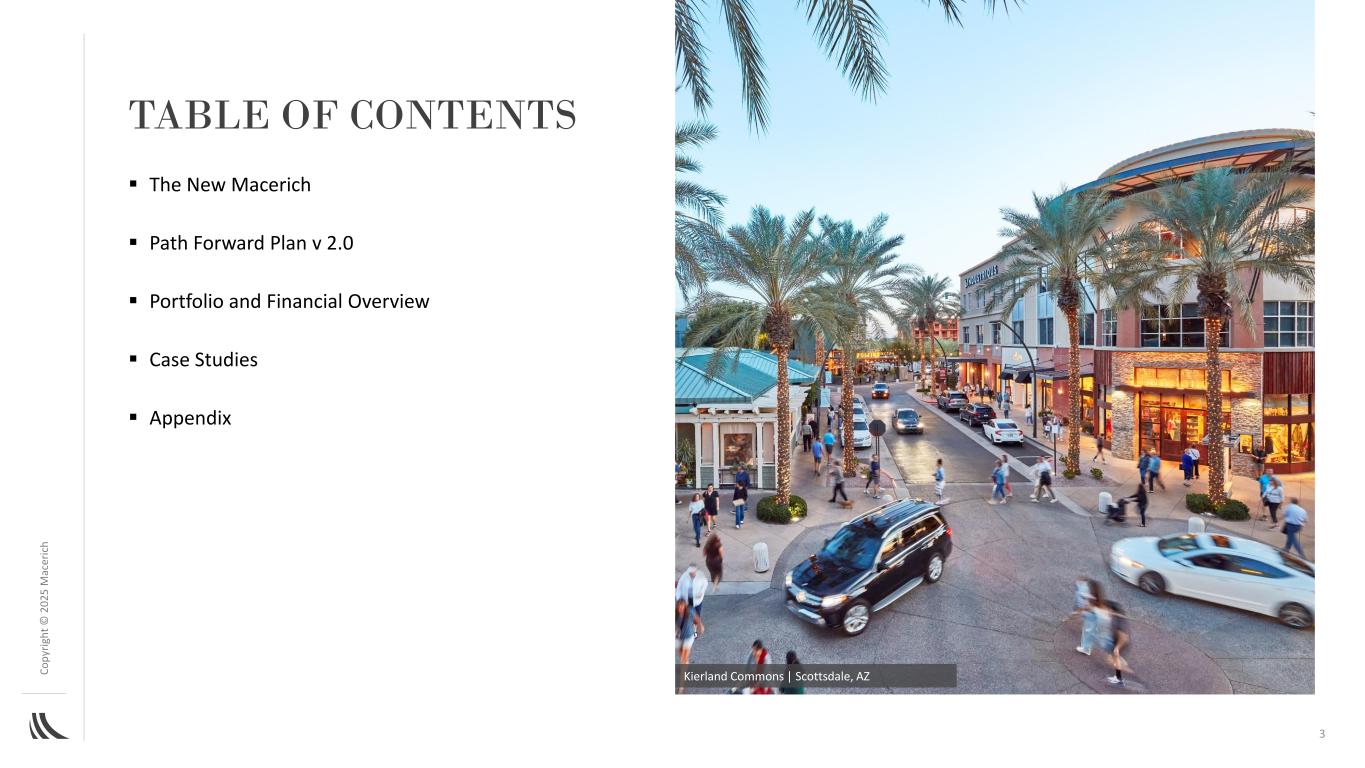 C o p yr ig h t©202 5m ac er ic h目录▪新的Macerich▪路径前进计划v2.0▪投资组合和财务概览▪案例研究▪附录Kierland Commons |亚利桑那州斯科茨代尔3