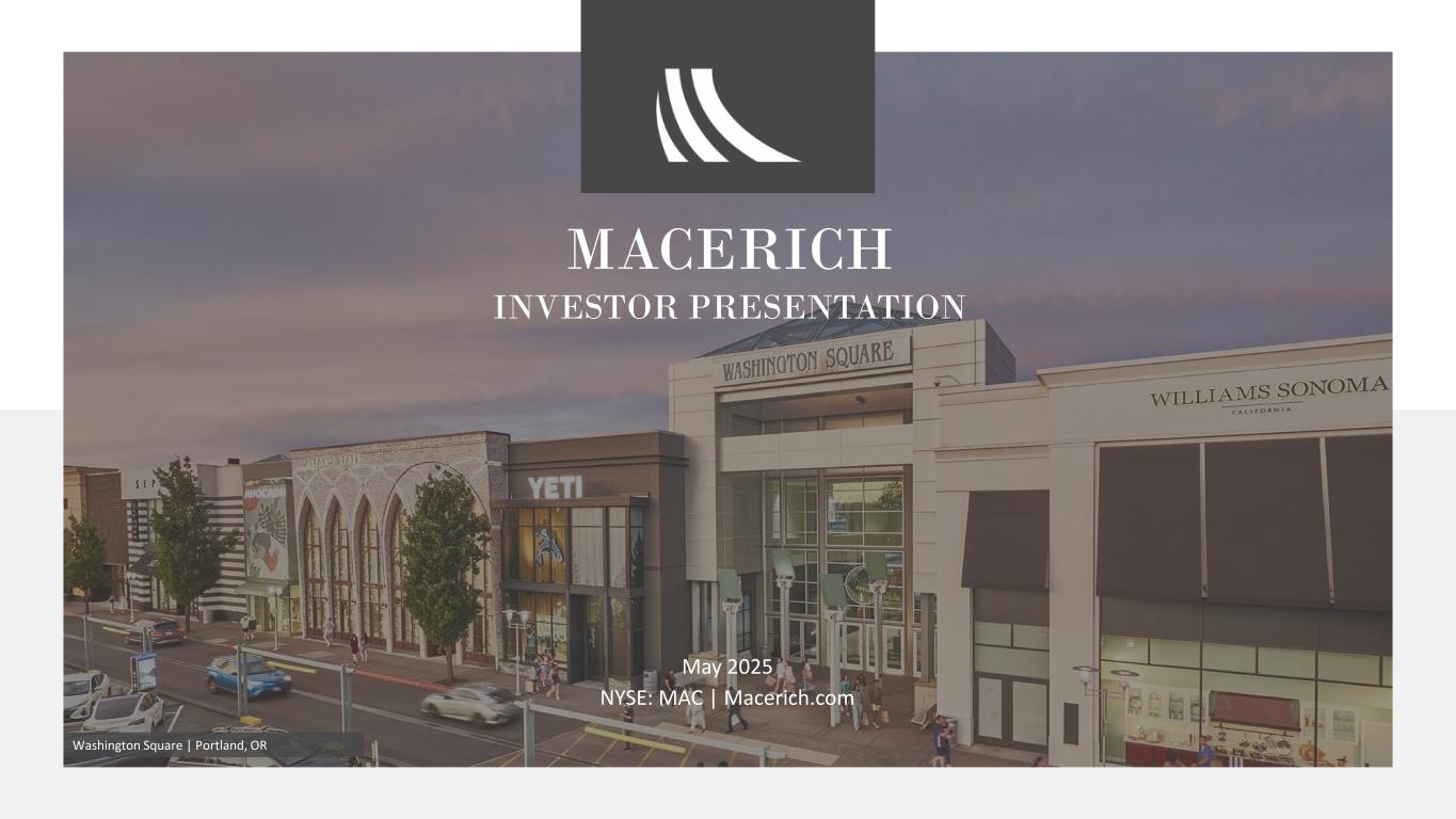 Macerich投资者介绍2025年5月NYSE:MAC | Macerich.com华盛顿广场|波特兰,或