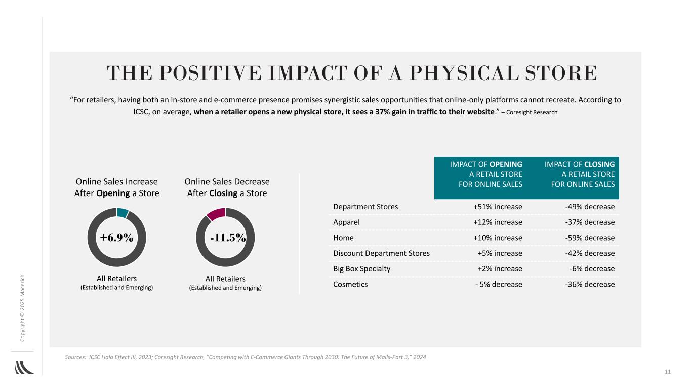 C o p yr ig h t©202 5M AC ER IC H“对于零售商来说,同时拥有店内和电子商务存在有望带来协同性销售机会,而仅在线平台无法再创造这些机会。根据ICSC的数据,平均而言,当一家零售商开设一家新的实体店时,其网站的访问量将增加37%。”– Coresight Research 11 The positive impacts of a physical store Sources:ICSC Halo Effect III,2023;Coresight Research,“Competing with e-commerce giants through 2030:the future of malls-Part 3,”2024年为线上销售开设零售店的影响为线上销售开设零售店的影响百货+ 51%增长-49 %下降服装+ 12%增长-37 %下降家居+ 10%增长-59 %下降折扣百货+ 5%增长-42 %下降大盒特产+ 2%增长-6 %下降化妆品-5%下降-36 %下降-11.5 % + 6.9%线上销售增长后开店后线上销售下降后线上销售下降所有零售商(老牌和新兴)所有零售商(老牌和新兴)