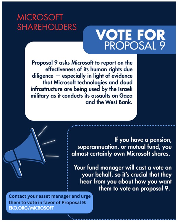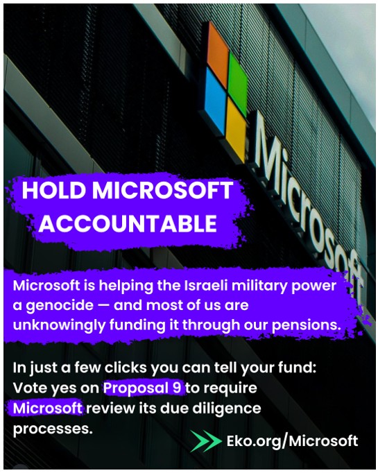 紧急:@微软正在为以色列在加沙和约旦河西岸的人工智能战争提供动力,12月5日,股东们将对一项决议进行投票,以追究其责任。和我一起用我们的养老金权力通过决议:eko.org/microsoft