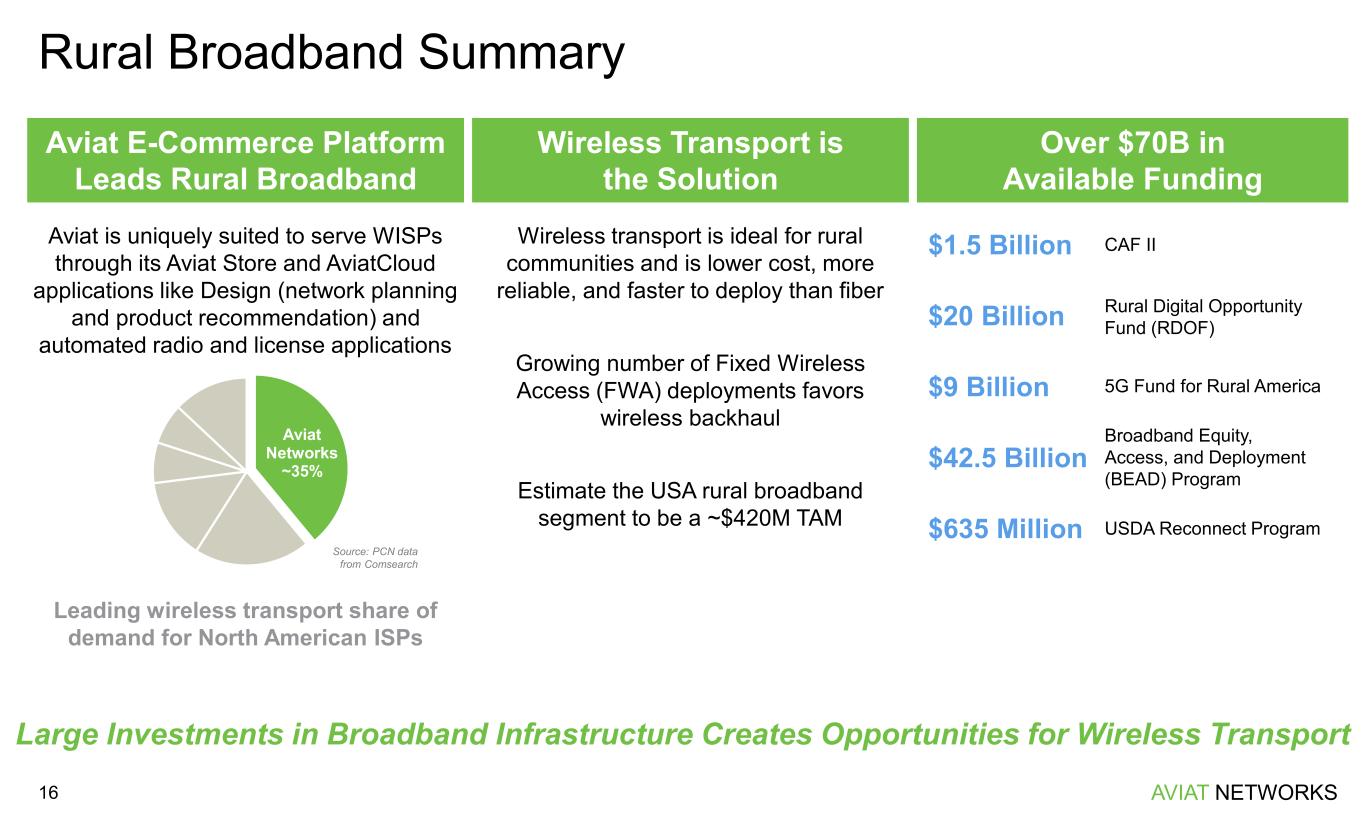 AVIAT NETWORKS16对宽带基础设施的大量投资为无线传输创造了机会农村宽带汇总超过70B美元的可用资金无线传输是解决方案AVIAT电子商务平台引领农村宽带CAF II农村数字机会基金(RDOF)5G基金用于美国农村宽带公平、接入和部署(BEAD)计划USDA重新连接计划15亿美元200亿美元90亿美元425亿美元6.35亿美元的无线传输对于农村社区来说是理想的,而且成本更低、更可靠,并且部署速度比光纤更快固定无线接入(FWA)部署数量不断增加有利于无线回程估计美国农村宽带部分约为4.2亿美元TAM Aviat独特地适合通过其Aviat Store和AviatCloud应用程序为WISP提供服务,如Design(网络规划和产品推荐)以及自动化无线电和许可应用程序阿维亚网络~35%资料来源:来自COMSearch的PCN数据北美ISP需求中领先的无线传输份额