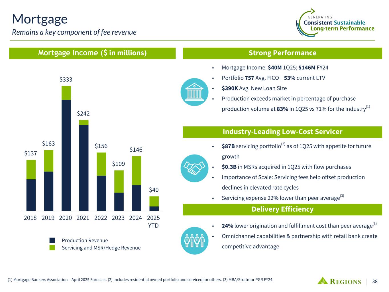 38抵押贷款仍是手续费收入的关键组成部分(1)抵押贷款银行家协会– 2025年4月预测。(2)包括为他人服务的住宅自有投资组合。(3)MBA/Stratmor PGR FY24。抵押贷款收入(百万美元)表现强劲行业领先的低成本服务商交付效率•抵押贷款收入:25年第一季度4000万美元;24财年1.46亿美元•投资组合平均757FICO | 53%当前LTV •平均39万美元。新贷款规模•产量超过市场的百分比采购生产量在1Q25为83%,而行业为71%(1)•截至1Q25的87B美元服务组合(2)对未来增长有兴趣•在1Q25通过流量采购获得的MSR为0.3B美元•规模的重要性:服务费有助于抵消高费率周期中的生产下降•服务费用比同行平均水平低22%(3)•发起低24%和履行成本高于同行平均水平(3)•全渠道能力和与零售银行的合作关系创造竞争优势$ 137 $ 163 $ 333 $ 242 $ 156 $ 109 $ 146 $ 40生产收入服务和MSR/对冲收入201820192020202120222023202320242025年初至今