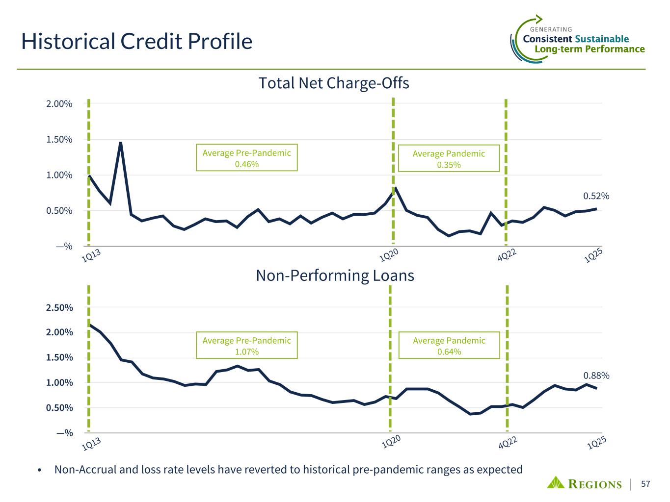 570.88% —% 0.50% 1.00% 1.50% 2.00% 2.50% 0.52% —% 0.50% 1.00% 1.50% 2.00%历史信用状况不良贷款总净冲销1Q20 1Q25 4Q221Q20 4Q22 1Q25 •非应计和损失率水平已恢复到历史疫情前范围,如预期的平均疫情前0.46%平均疫情前0.35%平均疫情前1.07%平均疫情前0.64% 1Q13 1Q13