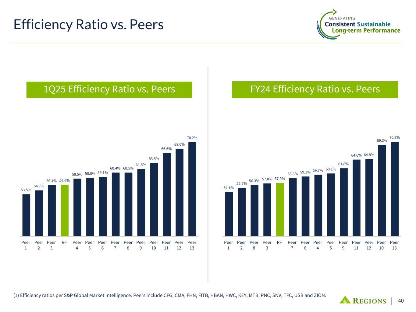 40效率比vs.同行1Q25效率比vs.同行FY24效率比vs.同行53.5% 54.7% 56.4% 56.6% 58.5% 58.8% 59.1% 60.4% 60.5% 61.5% 63.5% 66.6% 68.0% 70.2%同行1对等2对等3射频对等4对等5对等6对等7对等8对等9对等10对等11对等12对等13 54.1% 55.5% 56.3% 57.0% 57.0% 58.6% 59.1% 59.7% 60.1% 61.8% 64.6% 69.3% 70.3%同行1对等2对等8对等3射频对等7对等6对等4对等5对等9对等11对等12对等10对等13(根据标普全球市场情报。同行包括CFG、CMA、FHN、FITB、HBAN、HWC、KEY、MTB、PNC、SNV、TFC、USB和ZION。