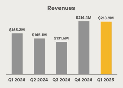 | – | 收入从2024年第一季度的1.652亿美元增长30%至2025年第一季度的2.139亿美元。 |