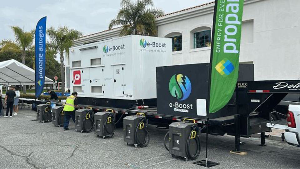 两个80A Autel Level 2 EV充电器上带有四个端口的e-Boost D Mobile(可再生柴油)
