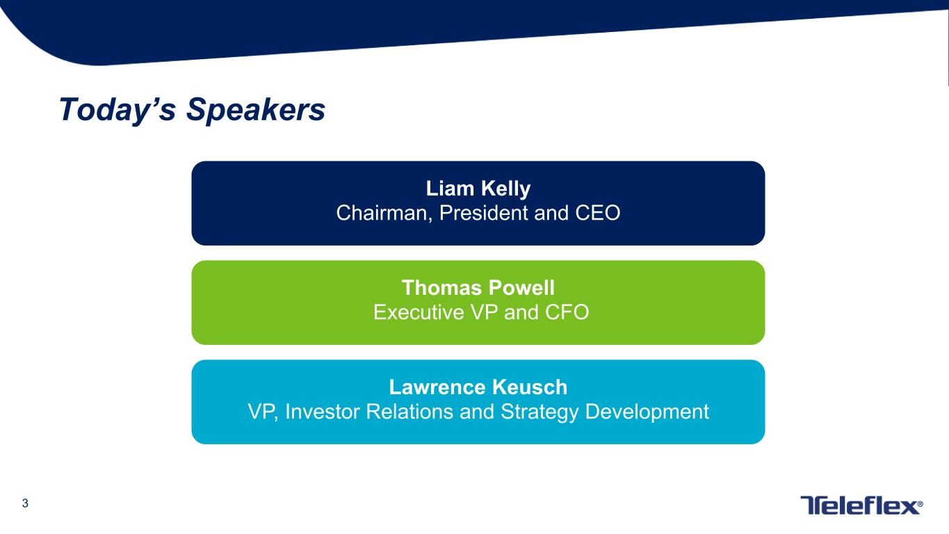 今日3位演讲者Liam Kelly董事长、总裁兼首席执行官Lawrence Keusch投资者关系和战略发展副总裁Thomas Powell执行副总裁兼CFO