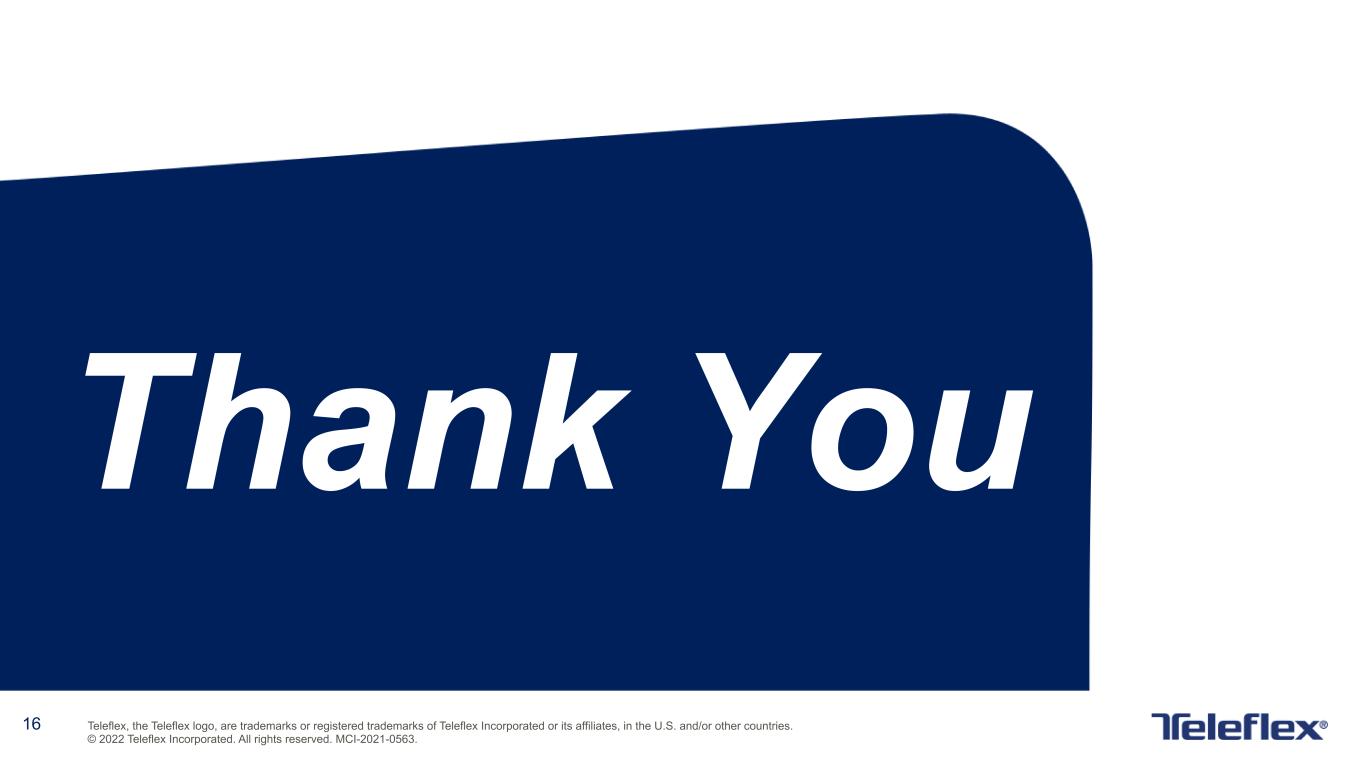 161616 Thank You Teleflex,Teleflex标志,是Teleflex Incorporated或其附属公司在美国和/或其他国家的商标或注册商标。© 2022 Teleflex Incorporated。版权所有。MCI-2021-0563。