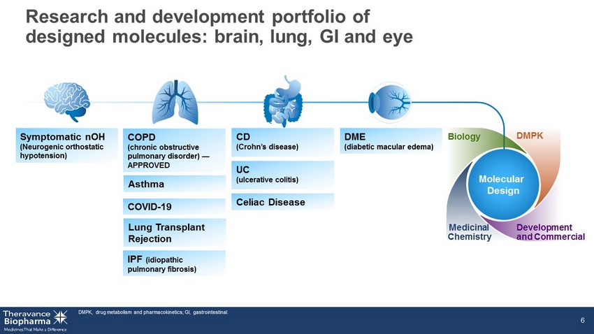 Theravance Biopharma difference: Targeting the right disease with the right molecular design TI, therapeutic index. 5 TI TI α STAT P STAT P STAT JAK β γ JAK N UCLEUS P STAT P STAT