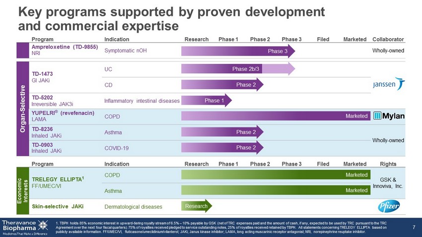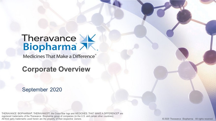 Corporate Overview September 2020 THERAVANCE BIOPHARMA ® , THERAVANCE ® , the Cross/Star logo and MEDICINES THAT MAKE A DIFFERENCE ® are registered trademarks of the Theravance Biopharma group of companies (in the U.S. and certain other countries). All third party trademarks used herein are the property of their respective owners. © 2020 Theravance Biopharma. All rights reserved.