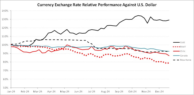 大宗商品价格继续波动,因为随着政治变化和不确定性,世界各地的经济体继续经历经济挑战。黄金和白银价格的波动影响公司的收入,而投入成本的价格波动,如石油和外汇汇率,特别是巴西雷亚尔、智利比索、毛里塔尼亚ouguiya和加元,可能会对公司的运营成本和资本支出产生影响。