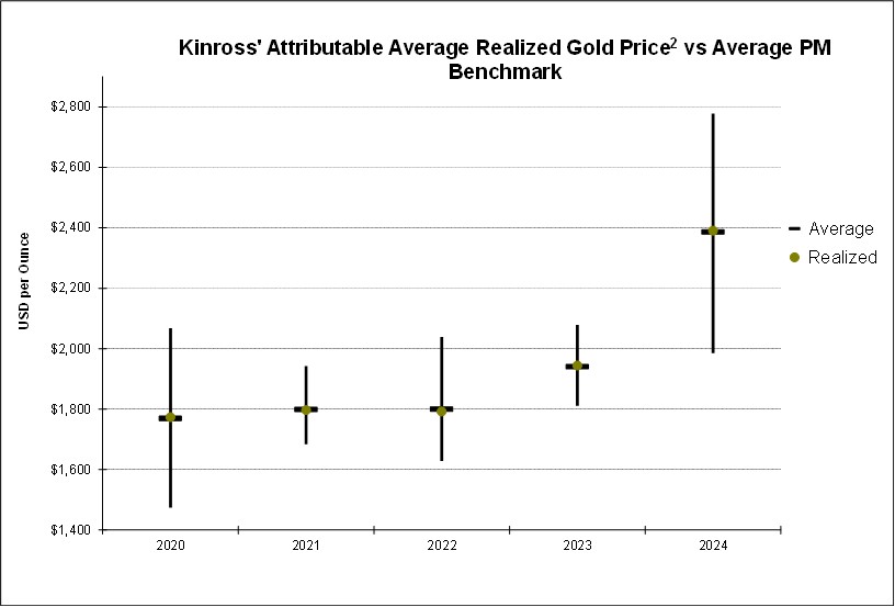 本次管理层讨论和分析(“MD & A”)编制于2025年2月12日,内容涉及截至2024年12月31日及该日终了年度Kinross Gold Corporation及其全资子公司的财务状况和经营业绩,旨在补充和补充Kinross Gold Corporation截至2024年12月31日止年度的经审计年度综合财务报表及其附注(“财务报表”)。读者请注意,MD & A包含有关预期未来事件以及公司财务和经营业绩的前瞻性陈述,实际事件可能与管理层的预期有所不同。鼓励读者阅读本MD & A中包含的关于前瞻性信息的警示性声明,并查阅可在公司网站www.kinross.com和www.sedarplus.ca上查阅的Kinross Gold Corporation的财务报表和相应的财务报表附注。财务报表和MD & A以美元表示。财务报表是根据国际会计准则理事会(“IASB”)颁布的《国际财务报告准则》(“IFRS”)编制的。本次讨论涉及我们认为对了解我们截至2024年12月31日止年度的财务状况和经营业绩以及我们的前景很重要的事项。