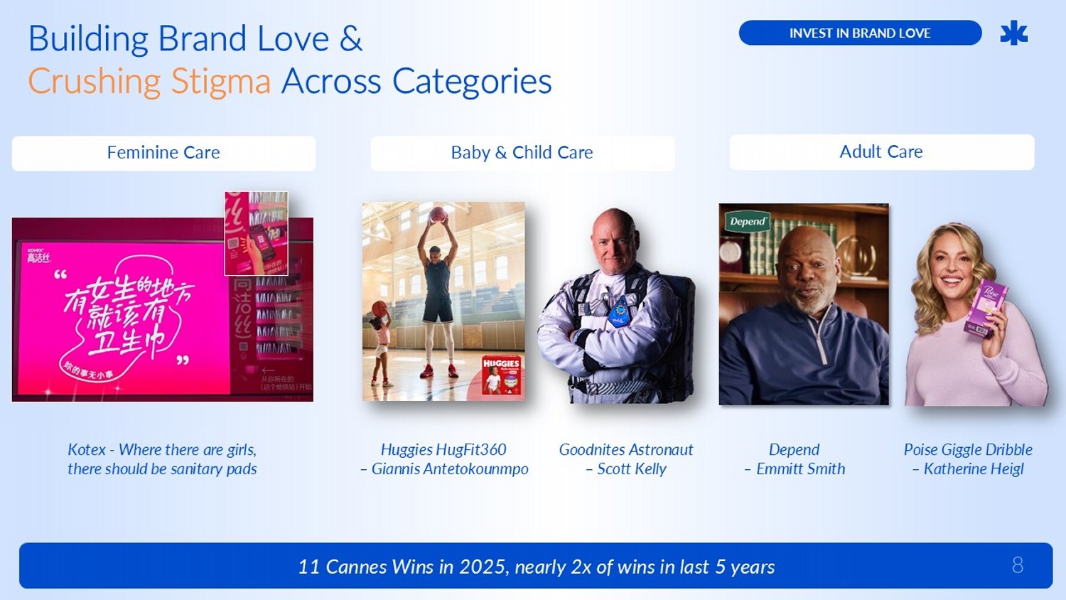 跨类别建立品牌爱&粉碎耻辱Goodnites Astronaut – Scott Kelly Poise Giggle Dribble – Katherine Heigl Huggies HugFit360 – Giannis Antetokounmpo 11戛纳电影节在2025年获胜,过去5年中近2倍的胜利取决于– Emitt Smith Kotex-哪里有女孩,哪里就应该有卫生垫投资于品牌爱女性护理婴儿和儿童护理成人护理