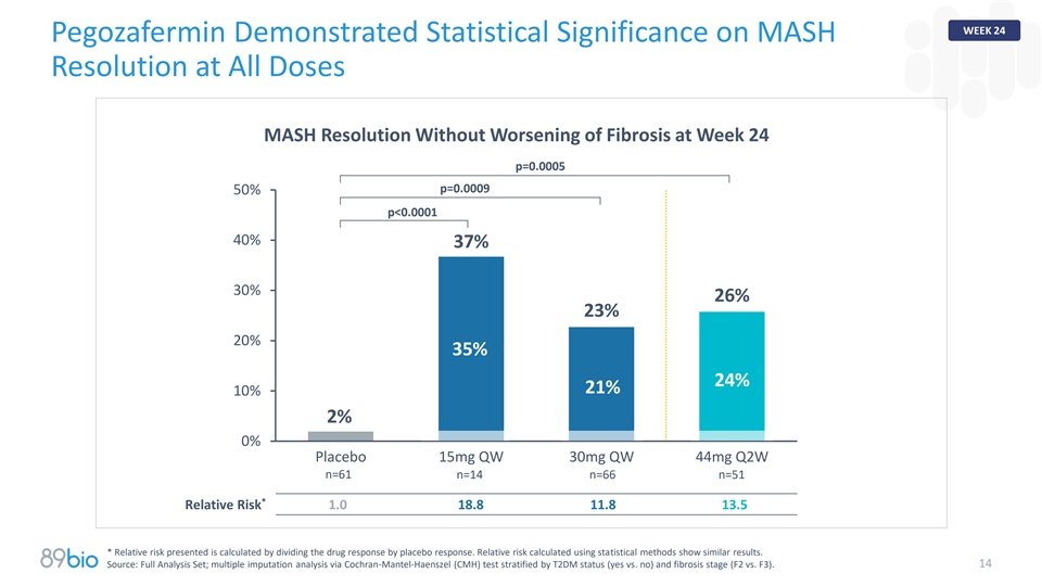 Pegozafermin作为F2-F3 MASH的领先疗法基于MASH中的最高SUCRA评分(Hepatology Journal)比较药物疗法对纤维化复发和MASH解决的比较数据来源29项随机对照试验9,234名MASH患者来源:Souza、Matheus等人,2025年。“代谢性功能障碍相关性脂肪性肝炎纤维化回归和MASH分辨率的药理疗法比较:系统评价和网络荟萃分析。”肝病学,2月4日。https://doi.org/10.1097/HEP.0000000000001254。13