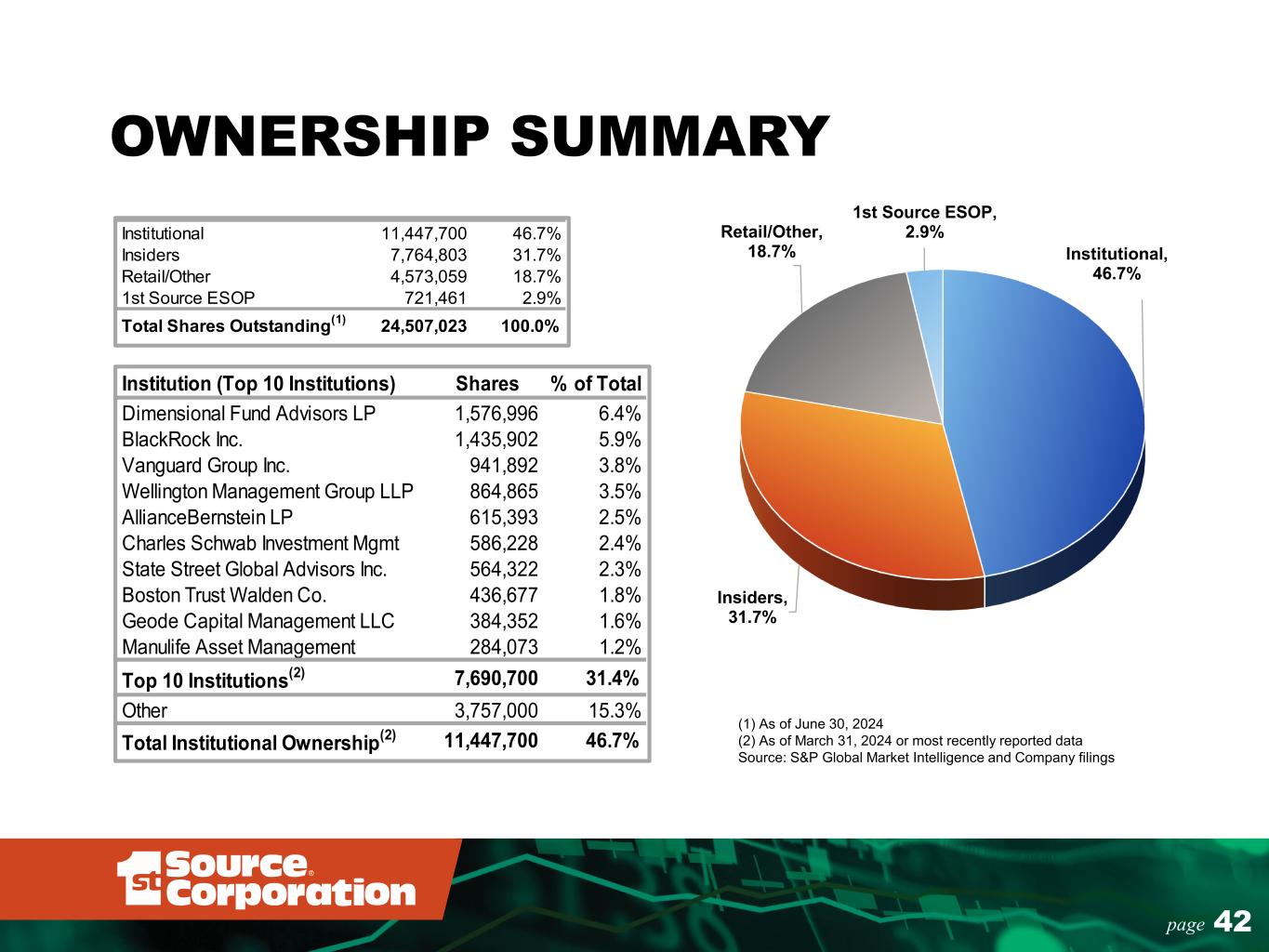 投资者介绍2024年第二季度纳斯达克股票代码:SRCE | www.1stsource.com