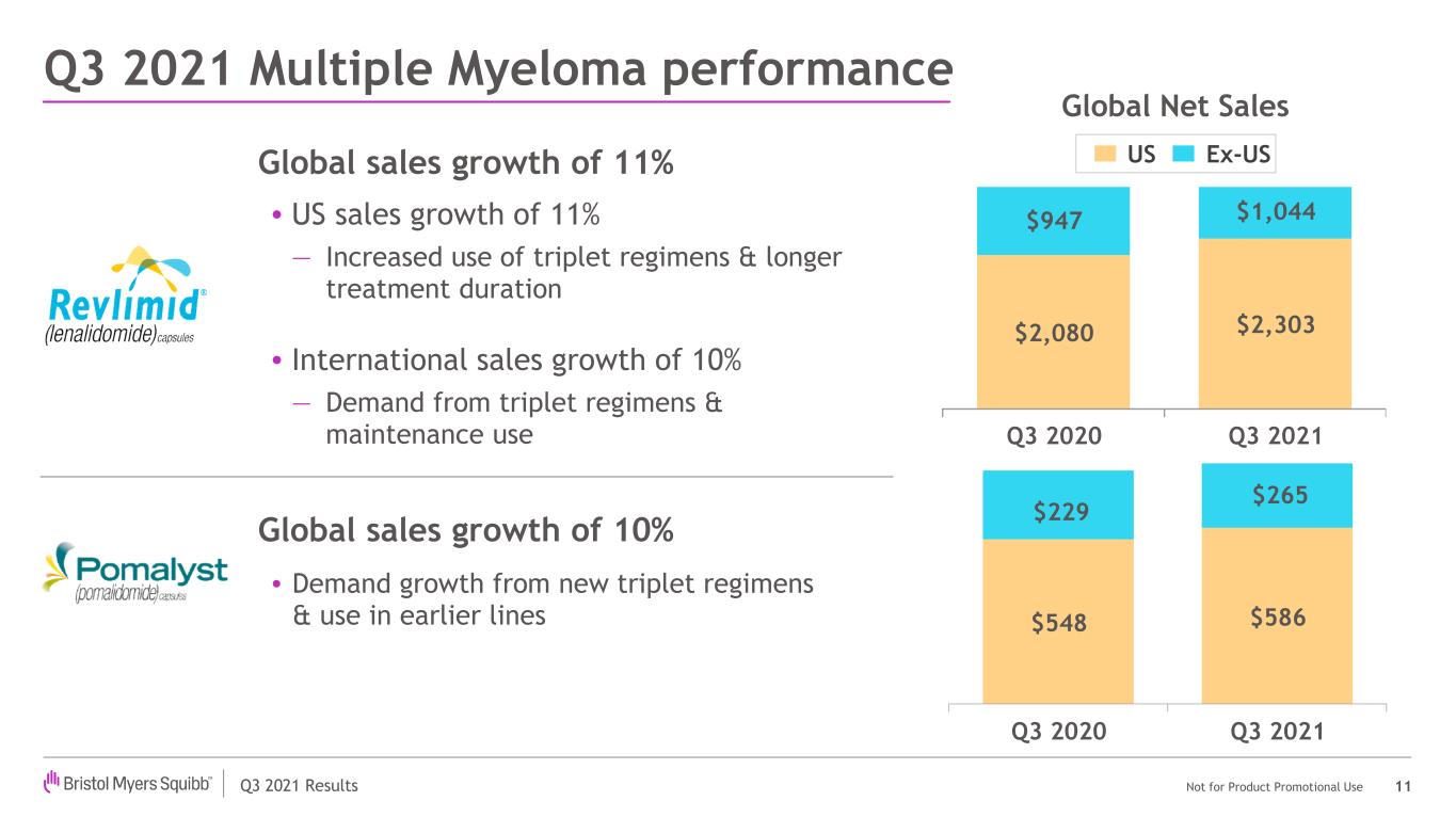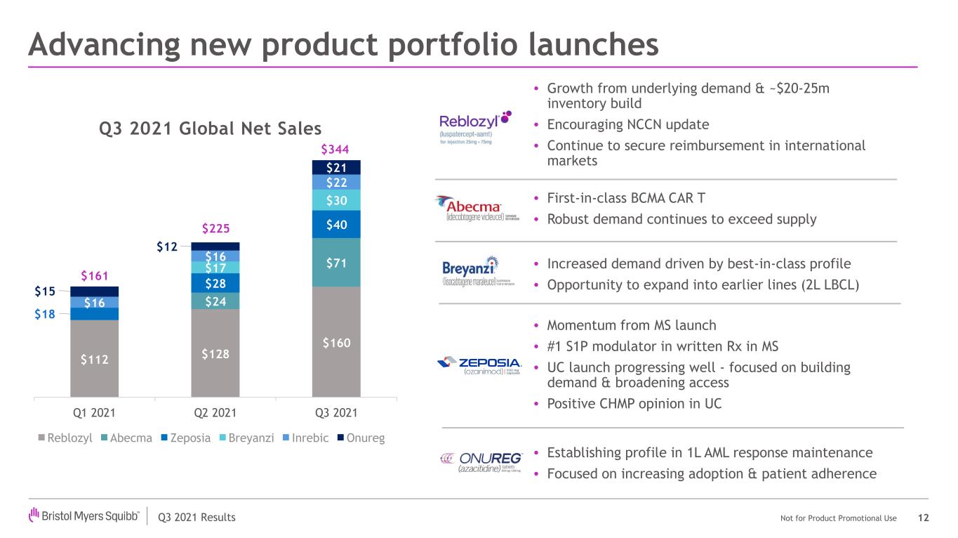 2021年第三季度业绩用于产品促销用途的2021年第三季度多发性骨髓瘤性能11$548$586$229$265 2020年第三季度2021年全球销售增长11%•美国销售增长11%-增加使用三联体治疗方案和更长的治疗时间•国际销售增长10%-来自三联体治疗方案的需求和维护使用全球销售增长10%•新的三联式疗法和早期使用的需求增长全球净销售额$2,080$2,303$947$1,044Q3 2020Q3 2021US Ex-US