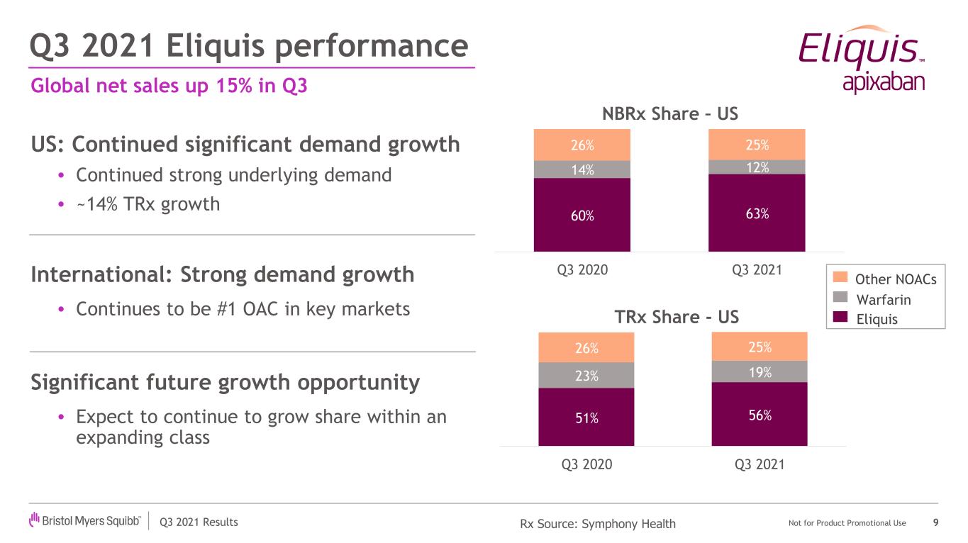2021年第三季度业绩用于产品促销用途美国:持续的显著需求增长•持续强劲的潜在需求•~14%的TRX增长2021年第三季度Eliquis Performance9Rx资料来源:Symphony Health重大的未来增长机会•预计在不断扩大的类别中继续增长份额国际:强劲的需求增长•继续排名第一OAC在主要市场的全球净销售额在第三季度增长15%51%56%23%19%26%25%25%Q3 2020Q3 2021TRX份额-美国其他NOACS Warfarin Eliquis60%63%14%12%26%25%Q3 2020NBRX份额–美国