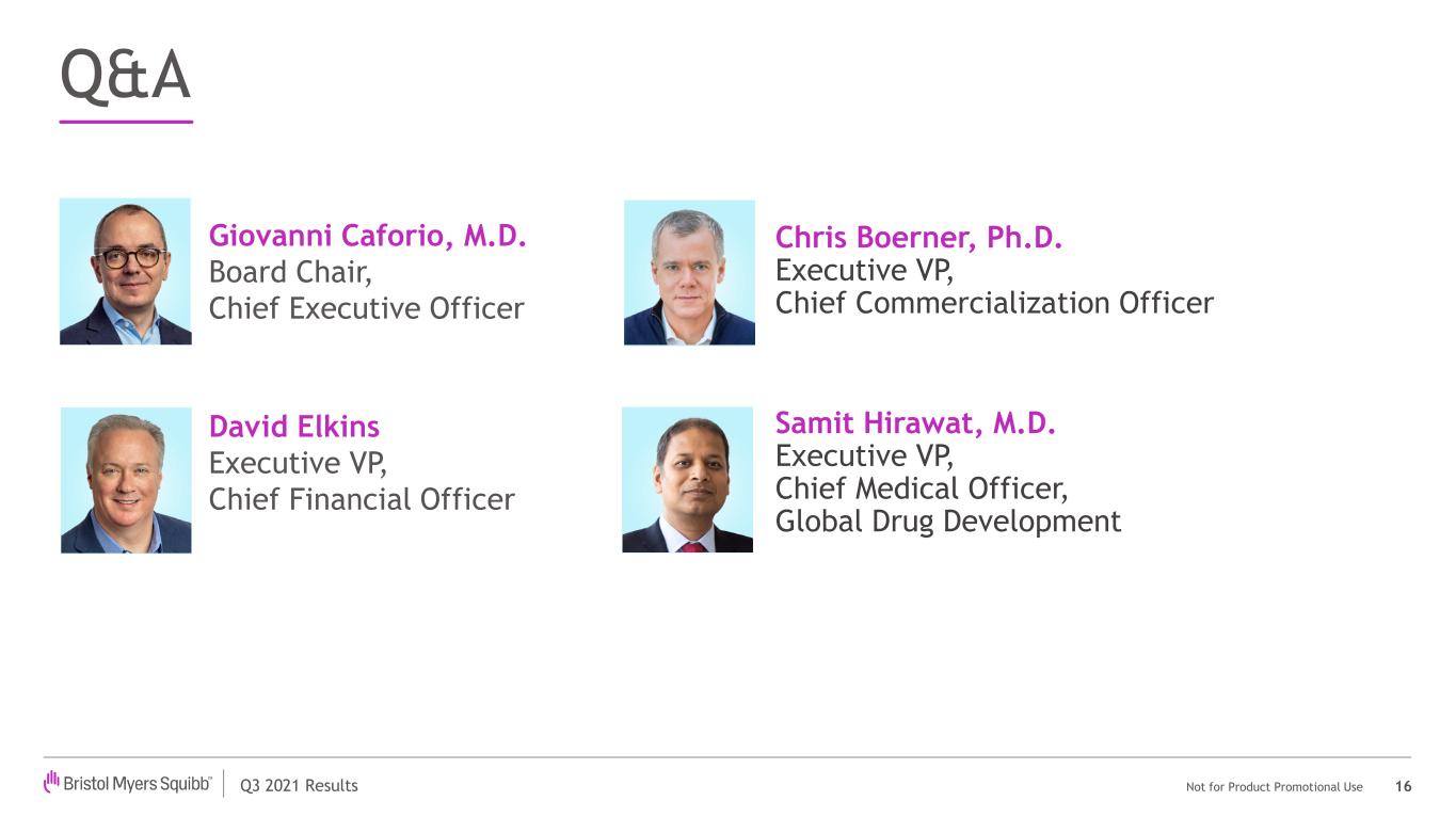 2021年第三季度业绩不用于产品促销Q&A Giovanni Caforio,医学博士,董事会主席,首席执行官,David Elkins执行副总裁,首席财务官16Chris Boerner,博士。执行副总裁,首席商业化官Samit Hirawat,医学博士,执行副总裁,首席医疗官,全球药物开发