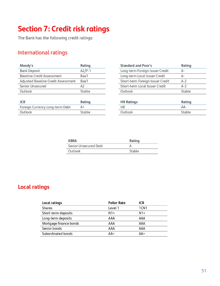 第七节:信用风险评级t h e b a n k h a s t h e f o ll o w i n g c r ed i t r a t i n g s:i n t e r n a ti o n a l r a t i n g s 穆迪 b a n k d p o s it rating a 2/p-1 b a s e l i ne c r ed it a ss e ss m en t b a1调整后基准信用评估Baa1 sen i or U n s e c u r e d outlook A2 s t a b l e s t a n d a r d a n d p o r ' s l o ng-t e r m f or e i g i g i ss ue r c r ed it r a tin g a-l o ng-t e r m l o c a l i ss ue r c r ed it s h or t-t e r m f或e i gn i ss ue r c r ed it a-a-2 s h或t-t e r m l o c a l i ss ue r c r ed it outlook a-2 s t a b l e jcr f或e i gn c u rr en c y l o ng-t e r m d eb t r a tin g a + ou t l oo k s t a b l e h r r a tin g s HR r a tin g AA-ou t l oo k s t a b l e kbra s en i或美国证券交易委员会(SEC)发布的一份报告显示,美国经济放缓对美国经济造成严重影响,美国经济放缓,美国经济放缓,美国经济放缓,美国经济放缓,美国经济放缓,美国经济放缓,美国经济放缓,美国经济放缓,美国经济放缓,美国经济放缓,美国经济放缓,美国经济放缓,美国经济放缓,美国经济放缓,美国经济放缓,美国经济放缓,美国经济放缓,美国经济放缓,美国经济放缓,美国经济放缓,美国经济放缓,美国经济放缓,美国经济放缓,美国经济放缓,美国经济放缓,美国经济放缓,美国经济放缓,美国经济放缓,美国经济放缓,美国经济放缓,美国经济放缓,美国经济放缓,美国经济放缓,美国经济放缓,美国经济放缓,美国经济放缓,美国经济放缓,美国经济放缓,美国经济放缓,美国经济放缓,美国经济放缓,美国经济放缓,美国经济放缓