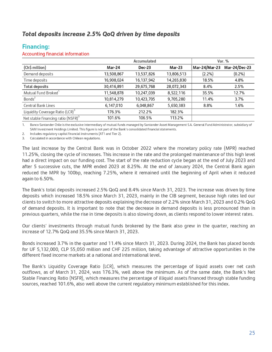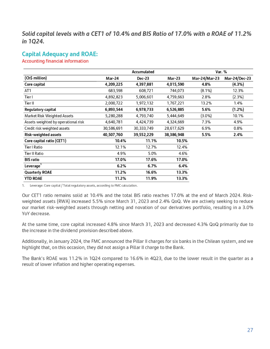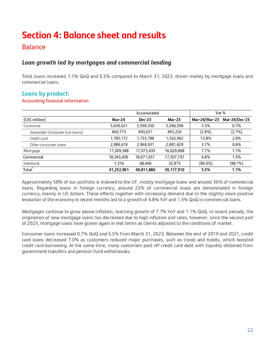 B a n c o s a n t a nd e r c h i l e m a n a g e m e n t c o mm e n t a r y a s o f m a r c h 2024年3月31日