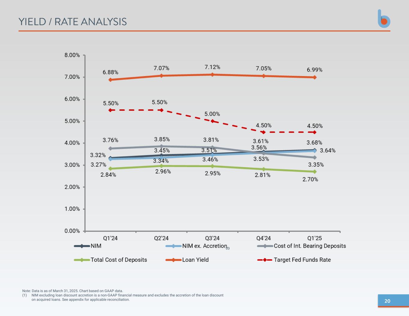 注:数据截至2025年3月31日。基于GAAP数据的图表。(1)不包括贷款贴现增值的NIM是一种非公认会计准则财务指标,不包括已获得贷款的贷款贴现增值。适用的调节见附录。