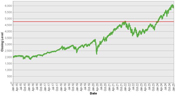 | 标普 500®指数–历史收盘水平* 2015年1月2日至2025年1月10日 |