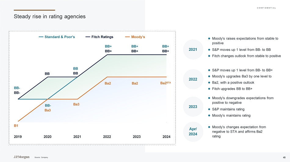 C O N F I D E N T I A L来源:公司20免责声明(续)银行间同业拆借利率(IBOR)和其他利率参考利率的严格保密变化正在或可能在未来成为受监管指导、改革和改革建议的约束,无论是国际的还是国家的。更多信息见:https://www.jpmorgan.com/global/disclosures/interbank _ offered _ rates。摩根大通及其关联公司不提供税务建议。因此,本文件(包括任何附件)中所包含的任何关于税务事项的讨论并非旨在也没有被书面用于,也不得被与摩根大通无关的任何人用于与本文所述任何事项的推广、营销或推荐有关或用于避免税务处罚的目的。J.P. Morgan是摩根大通公司及其在全球的子公司和关联公司投资银行业务的商标。证券、银团贷款安排、财务顾问、借贷、衍生品和其他投资银行业务和商业银行业务活动由J.P.Morgan Securities LLC、J.P.Morgan Securities plc、J.P.Morgan SE、JPMorgan ChaseBank,N.A.以及摩根大通 & Co. worldwide(包括Banco J.P. Morgan S.A.)的正式许可子公司和关联公司进行。摩根大通的雇员或代理人可能是上述任何实体的雇员。摩根大通证券有限公司由审慎监管局授权,受金融行为监管局和审慎监管局监管。J.P.Morgan SE由德国联邦金融监管局(Bundesanstalt f ü r Finanzdienstleistungsaufsicht,BaFin)授权为信贷机构,由BaFin、德国中央银行(Deutsche Bundesbank)和欧洲中央银行(ECB)共同监管。欲了解有关摩根大通其他任何法律实体的更多信息,请访问:https://www.jpmorgan.com/country/gb/en/disclosures/investment-bank-legal-entity-disclosures和https://www.jpmorgan.com/country/us/en/disclosures/legal-entity-information # Germany。JPMS LLC在适当时根据1934年《证券交易法》第15a6条规则,为其非美国关联公司为其美国客户或与其美国客户进行的证券交易提供中介服务。见:www.jpmorgan.com/securities-transactions。本演示文稿不构成任何摩根大通实体承销或配售任何证券或授予或提供信贷或提供任何其他服务的承诺。摩根大通申诉专员:0800-7700847/0800-7700810(听障人士)/ouvidoria.jp.morgan@jpmorgan.com版权所有2025。摩根大通 & Co.版权所有。摩根大通银行,N.A.,根据美利坚合众国法律组建的有限责任公司。"