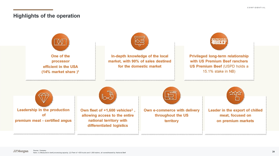 C O N F I D E N T I A L战略交易优化南美投资组合,专注于高附加值产品的运营地理存在能力资产Countr y 12个处理单元3个工业综合体4个CDS 4个处理单元1个工业综合体4个处理单元1个工业综合体1个约束单元1个处理单元| 4个CDS 20个加工厂| 5个工业综合体资产Countr y 1个处理单元(11个已售出)3个工业综合体3个CD(1个已售出)3个处理单元(1个已售出)1个工业综合体1个处理单元(3个已售出)1个工业综合体1个约束单元4个CD(1个已售出)5个加工厂| 5个工业综合体剩余资产已售2022(交易前)2023(交易后)处理能力(千吨/月)屠宰能力(头/天)20.300来源:公司3816.900处理能力(千吨/月)屠宰能力(头/天)20.2005.100