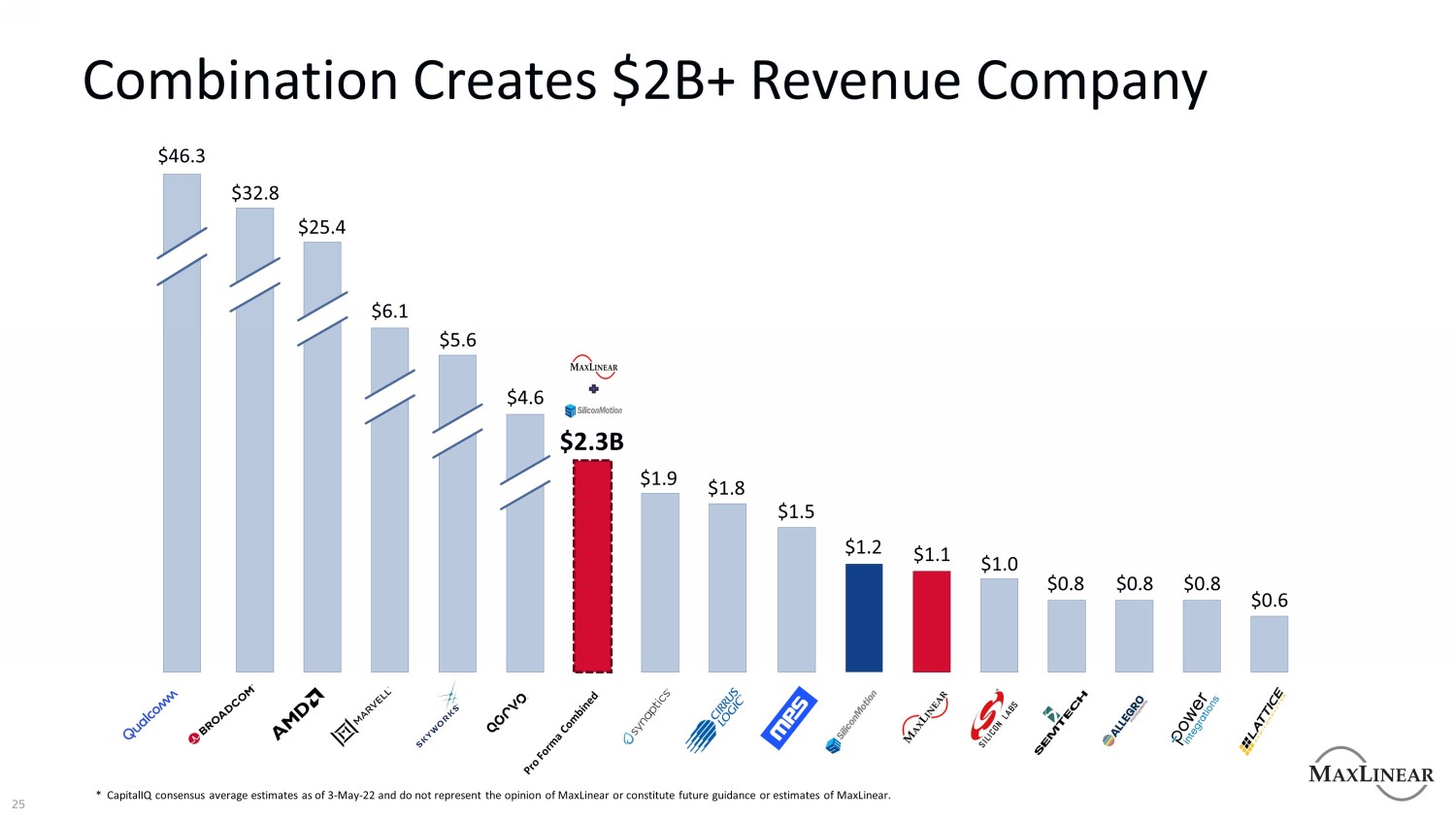 25组合创建$ 2B +收入公司,不代表MaxLinear的意见或构成MaxLinear的未来指导或估计