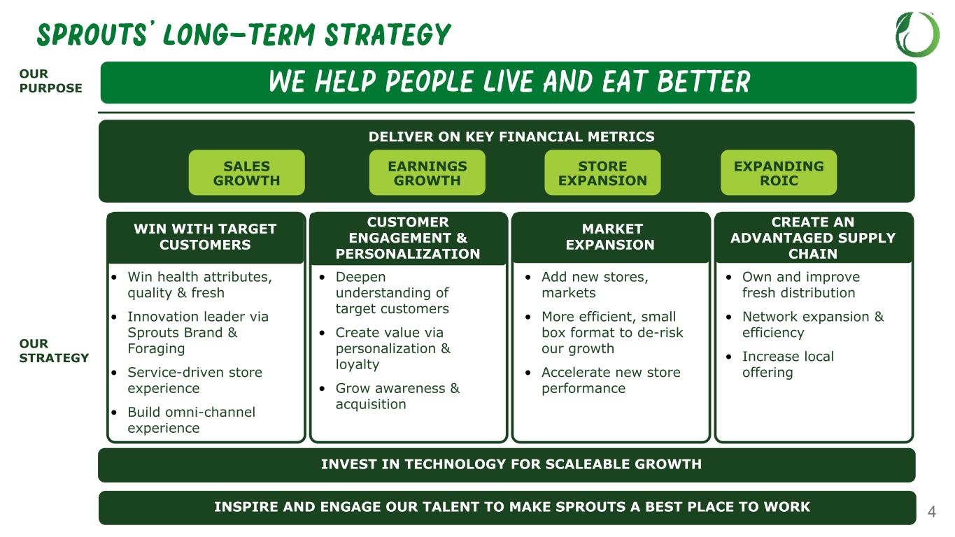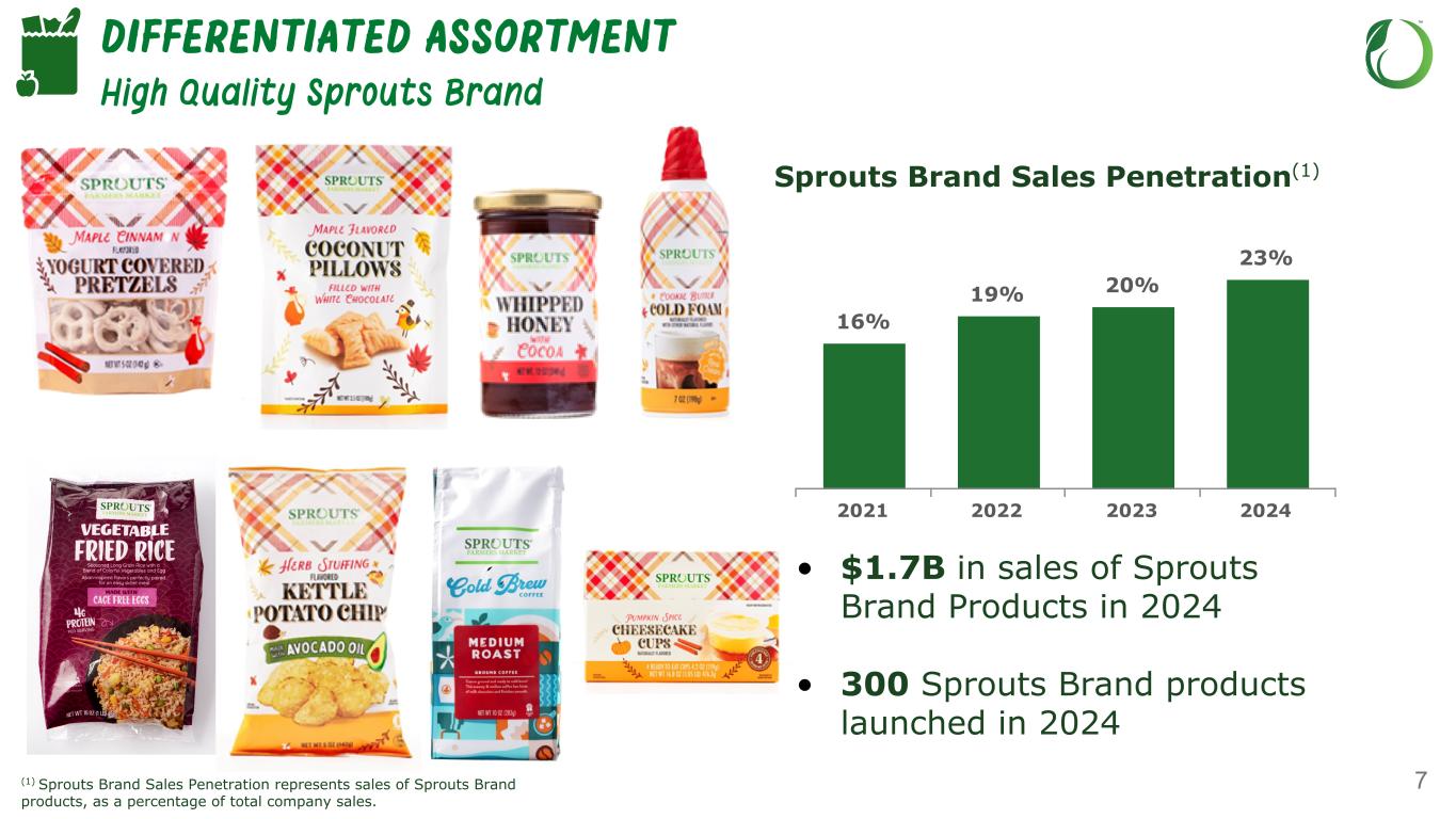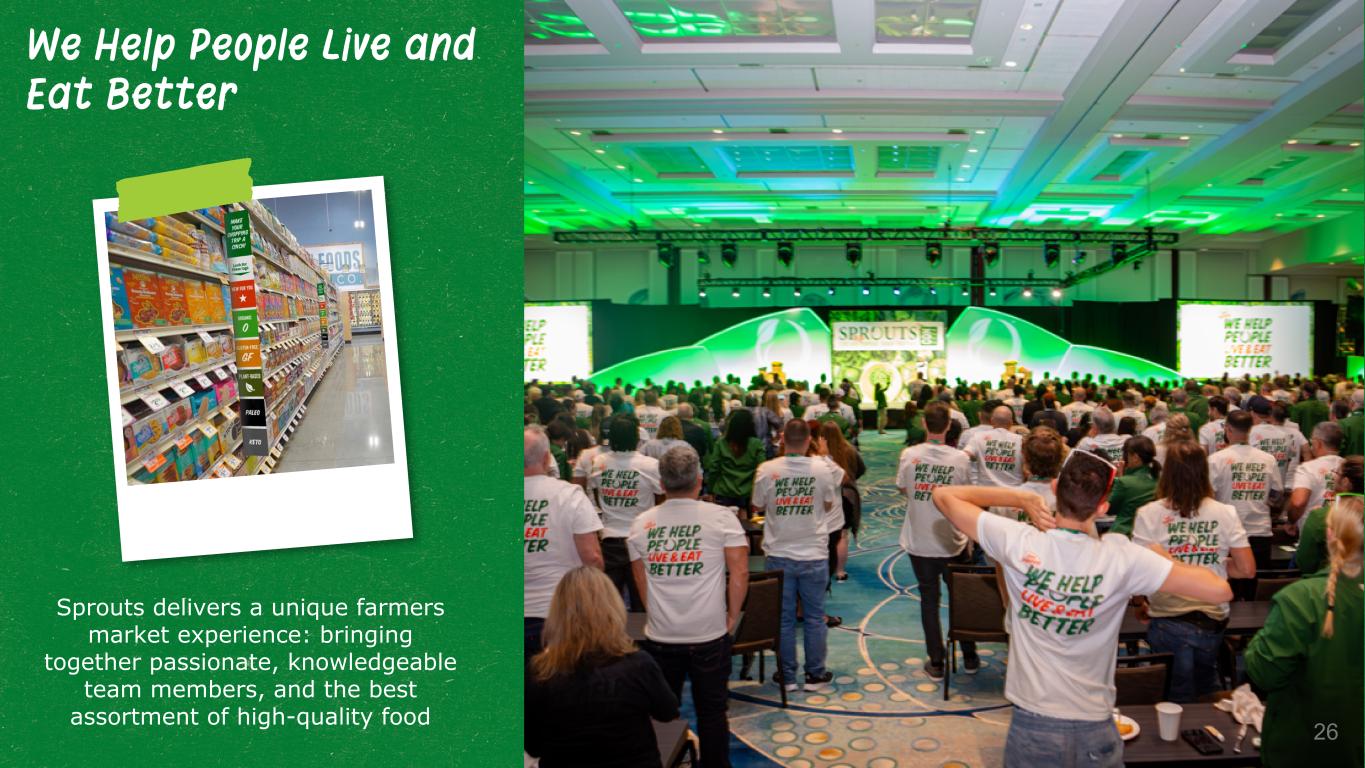 前瞻性陈述本演示文稿中的某些陈述具有1995年《私人证券诉讼改革法案》中定义的前瞻性。此处包含的任何非历史事实陈述(包括但不限于大意为Sprouts Farmers Market, Inc.(“公司”)或其管理层“预期”、“计划”、“估计”、“预期”、“将”或“相信”或这些术语的否定以及其他类似表达的陈述)均应被视为前瞻性陈述,包括但不限于关于公司前景、增长、机会和长期战略的陈述。这些陈述涉及某些风险和不确定性,可能导致实际结果与截至本演示文稿发布之日的预期存在重大差异。这些风险和不确定性包括但不限于,公司执行其长期战略的能力;公司在其竞争激烈的行业中成功竞争的能力;公司成功开设新店的能力;公司管理其增长的能力;公司维持或提高其营业利润率的能力;公司识别和应对消费者偏好趋势的能力;产品供应中断;设备供应中断;一般经济状况影响消费者支出或导致竞争性反应;会计准则变更;潜在的通货膨胀和/或通货紧缩趋势;关税;以及公司向美国证券交易委员会提交的文件中不时列出的其他因素,包括但不限于公司关于表格10-K的年度报告和表格10-Q的季度报告。公司打算这些前瞻性陈述仅在本演示文稿发布时发表,并且不承诺在获得更多信息后对其进行更新或修订,除非法律要求。我们参考调整后的毛利、调整后的毛利率、息税前利润、调整后的息税前利润、调整后的息税前利润率和调整后的稀释每股收益,每一项都是非公认会计准则财务指标。这些措施不是根据美国公认会计原则或公认会计原则编制的,也不是作为替代措施。公司管理层认为,这些措施为管理层、分析师和投资者提供了有关与其经营业绩和财务状况相关的某些额外财务和业务趋势的有用信息。此外,管理层将这些措施用于审查公司的财务业绩,其中某些措施可能被用作激励薪酬的组成部分。公司将调整后毛利定义为毛利,不包括特殊项目的影响。调整后的毛利率反映调整后的毛利润除以适用期间的净销售额。EBIT定义为扣除利息支出和所得税拨备前的净收入,调整后EBIT为EBIT,不包括特殊项目的影响。调整后息税前利润率反映调整后息税前利润除以适用期间的净销售额。公司将调整后的稀释每股收益定义为不包括特殊项目影响的稀释每股收益。非GAAP措施仅旨在提供额外信息,没有GAAP规定的任何标准含义。使用这些术语可能与其他公司报告的类似措施不同。由于其局限性,非GAAP衡量标准不应被视为可用于对公司业务增长进行再投资的可自由支配现金的衡量标准,也不应被视为可用于履行公司义务的现金的衡量标准。每一种非GAAP衡量标准作为一种分析工具都有其局限性,您不应孤立地考虑它们,也不应将其作为根据GAAP报告的公司业绩分析的替代品。就本文提供的前瞻性非GAAP财务指标而言,由于在预测和量化此类对账所需的某些金额方面存在固有困难,因此它们与可比的前瞻性GAAP指标不一致。除非另有说明,本演示文稿中包含的信息截至我们截至2024年12月29日的2024财年。非公认会计原则财务措施2