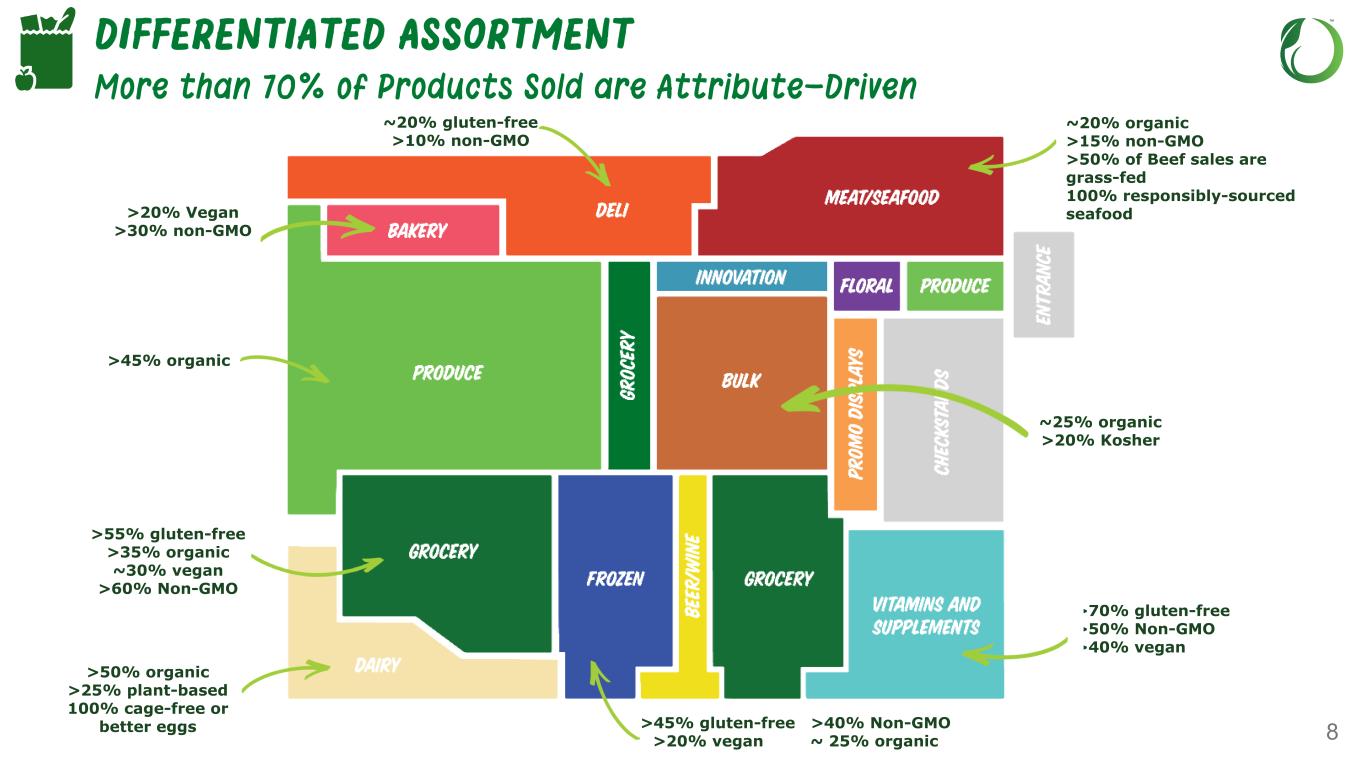 > 20%纯素> 30%非转基因> 45%有机> 55%无麸质> 35%有机~30%纯素> 60%非转基因> 50%有机> 25%植物性100%无笼或更好的鸡蛋> 45%无麸质> 40%非转基因> 20%纯素~25%有机> 70%无麸质> 50%非转基因> 40%纯素~20%无麸质> 10%非转基因~25%有机> 20%犹太洁食~20%有机> 15%非转基因> 50%牛肉销售为草饲100%负责任来源海鲜8差异化分类销售产品70%以上为属性驱动