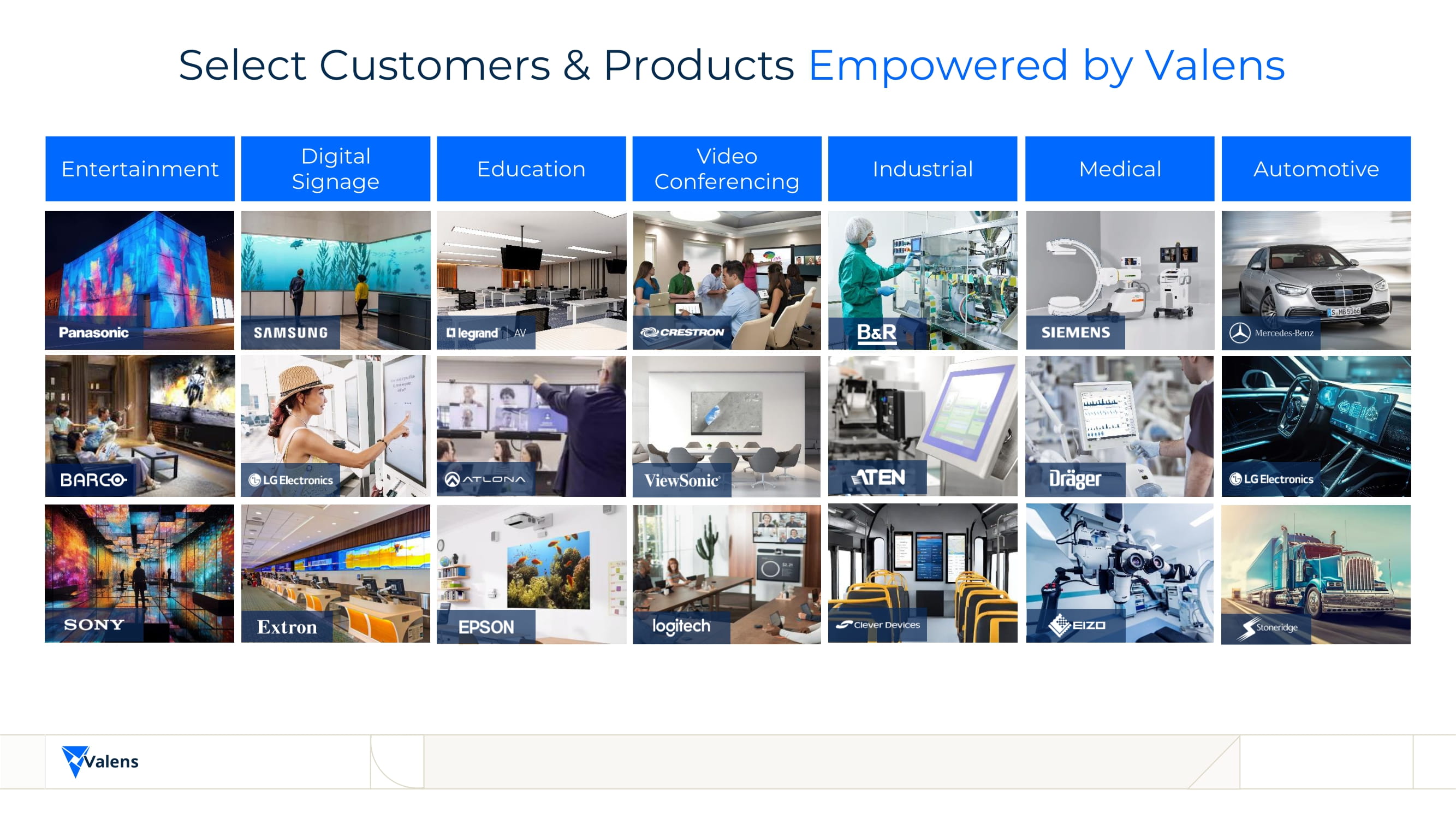 医疗工业视频会议教育数字标牌娱乐汽车精选客户& Valens赋能的产品