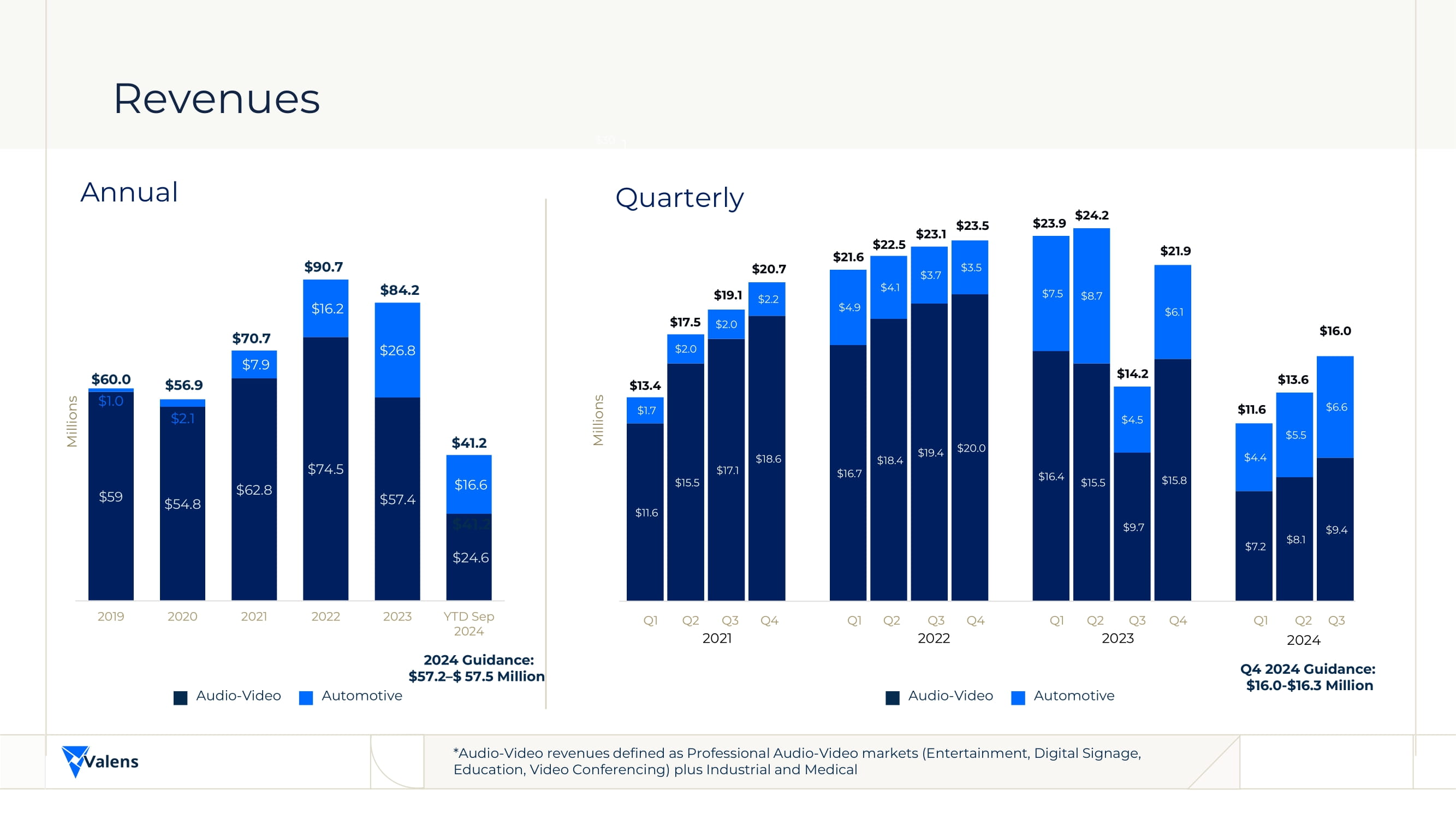 收入*音频-定义为专业音频的视频收入-视频市场(娱乐、数字标牌、教育、视频会议)加工业医疗$ 11.6 $ 15.5 $ 17.1 $ 18.6 $ 16.7 $ 18.4 $ 19.4 $ 20.0 $ 16.4 $ 15.5 $ 9.7 $ 15.8 $ 15.8 $ 7.2 $ 8.1 $ 9.4 $ 1.7 $ 2.0 $ 2.0 $ 2.2 $ 4.9 $ 4.1 $ 3.7 $ 3.5 $ 7.5 $ 8.7 $ 4.5 $ 6.1 $ 4.4 $ 5.5 $ 6.6 $ 30 millions $ 17.5 $ 13.4 $ 19.1 $ 20.7 $ 22.5 $ 21.6 $ 23.1 $ 23.5 $ 23.9 $ 24.2 $ 14.2 $ 21.9 $ 11.6 $ 13.6 2023 Q1 Q2 Q3 Q4 2021 Q1 Q2 Q3 Q4 2022 Q1 Q2 Q3 Q4 Q4 Q1 Q3 Q3 Q3 Q3 Q3 Q3 Q3 Q3 Q3 Q3 Q3 Q3 Q3 Q3 Q3 Q3 Q3 Q3 Q3 Q3 Q3 Q3 Q3 Q3 Q3 Q3 Q3 Q3 Q3 Q3 Q3 Q3 Q3 Q3 Q3 Q3 Q3 Q3 Q3 Q3 Q3 Q3 Q3 Q3 Q3 Q3 Q3 Q384.2美元6000万美元音频-视频汽车音频-视频汽车2024年年度季度指导:57.2美元– 5750万美元
