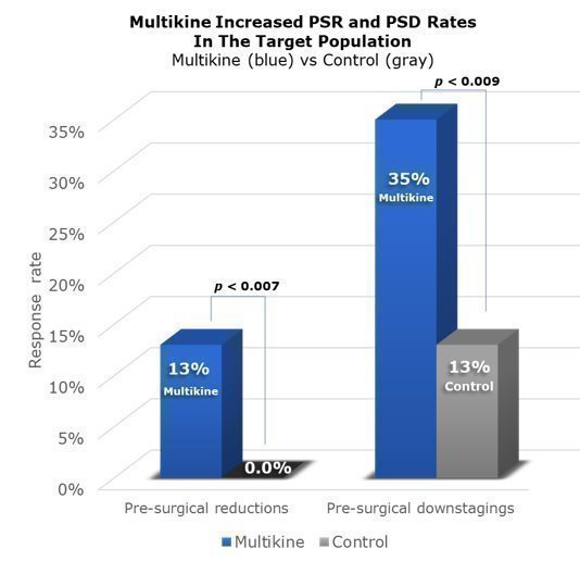 CEL-SCI认为,多因子可以导致更长的生存期,而不会出现安全问题。Multikine的临床研究于2023年10月在ESMO(欧洲医学肿瘤学会)上发表,在随机对照III期试验(RCT)中证明了目标人群中的以下情况: