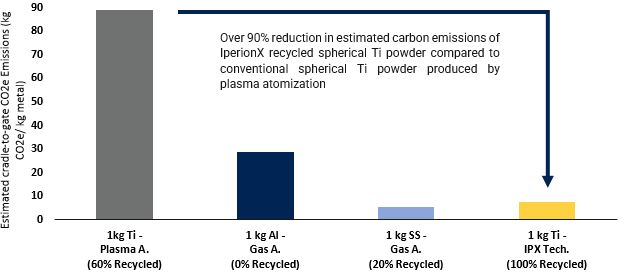 LCA验证了来自弗吉尼亚州IperionX钛生产设施的100%回收球形钛粉的生命周期碳足迹可能比其他通过等离子体雾化生产的钛球形粉末低+ 90%
