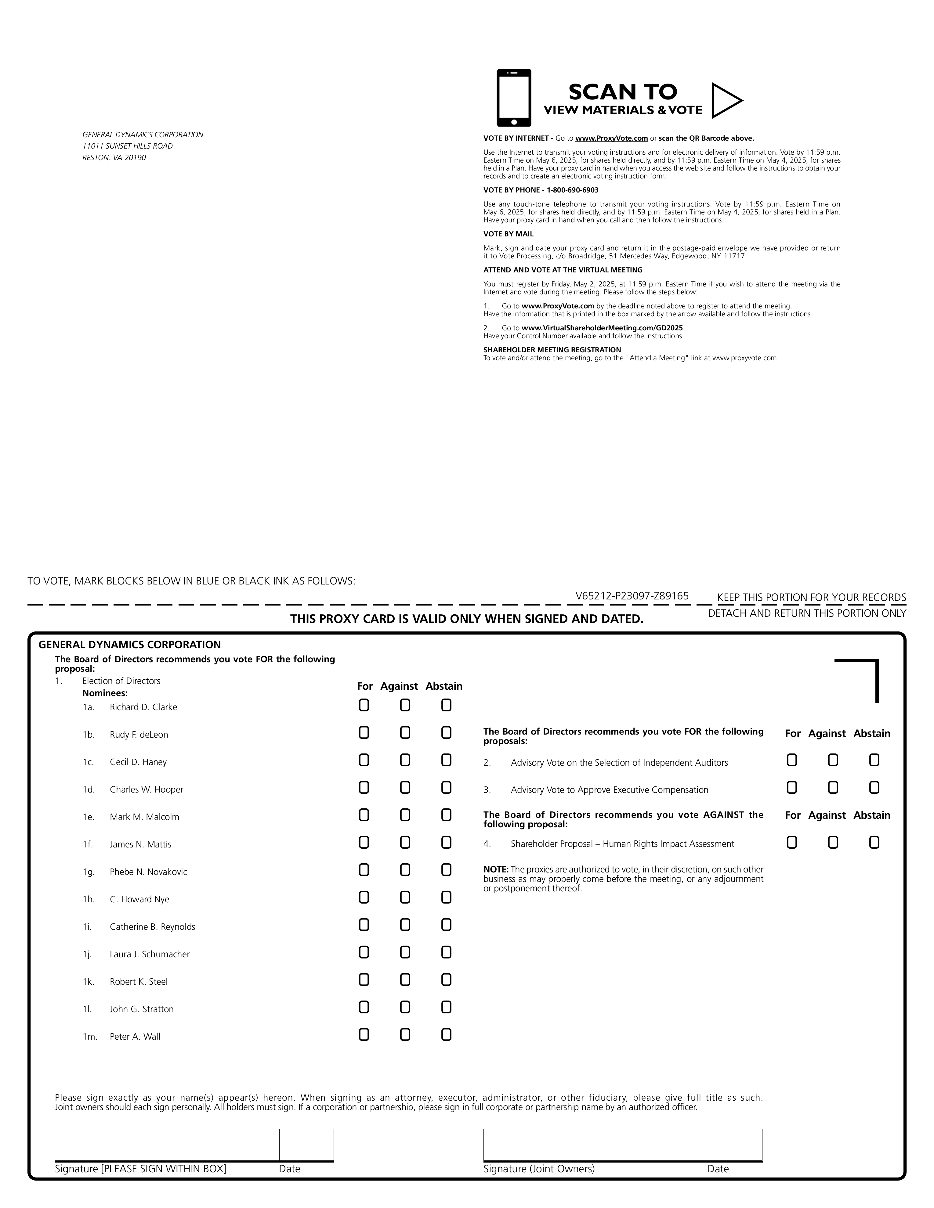 出席虚拟会议 要获准参加虚拟会议,您必须在美国东部时间2025年5月2日晚上11:59前通过访问www.proxyvote.com并按照指示提前注册。注册后,您可以在www.VirtualShareholderMeeting.com/GD2025上访问虚拟会议。 |