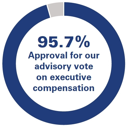 | 2025年5月7日,我们将举行年度股东大会,股东将在会上选举董事会,并就其他几项重要事项进行投票。随附的代理声明讨论了提交给您投票的主题以及我们健全的公司治理实践的概述,我们的薪酬-为-高管薪酬的绩效方法以及我们与股东的互动。请趁机阅读。 | ||